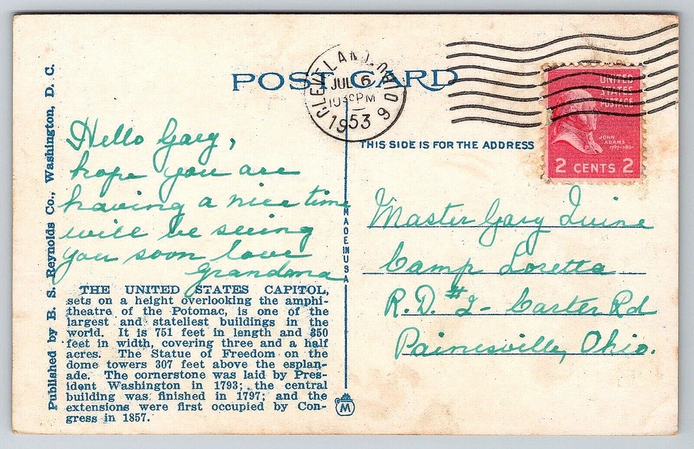 VINTAGE OLD ANTIQUE POSTCARD UNITED STATES CAPITOL BUILDING WASHINGTON D.C. 1953