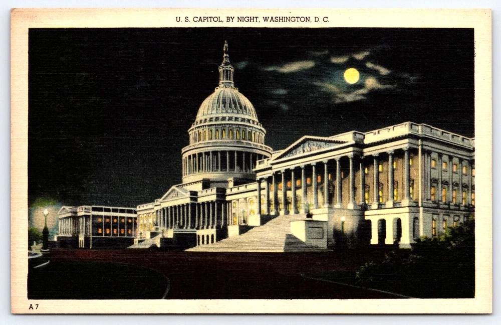 VINTAGE OLD ANTIQUE POSTCARD U.S. CAPITOL BUILDING BY NIGHT WASHINGTON D.C. USA