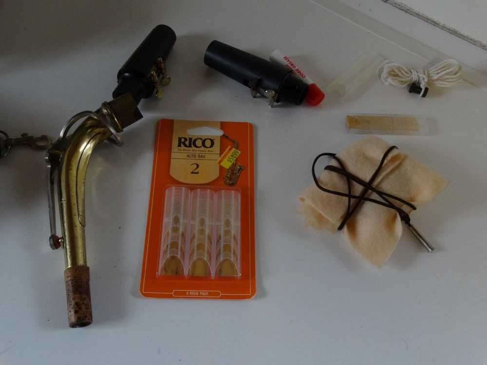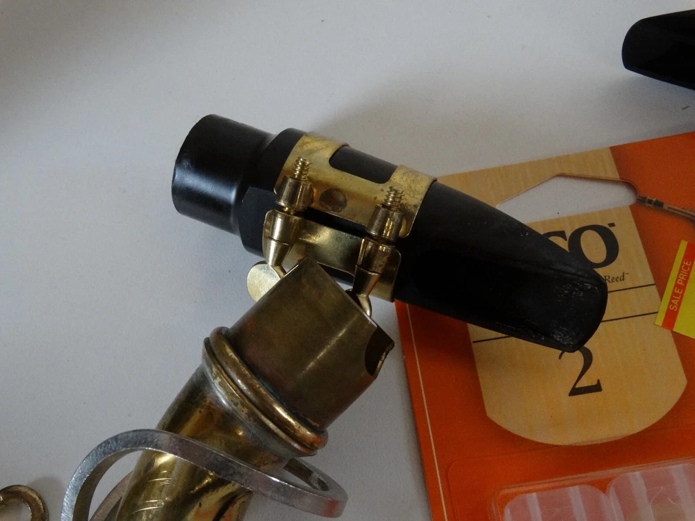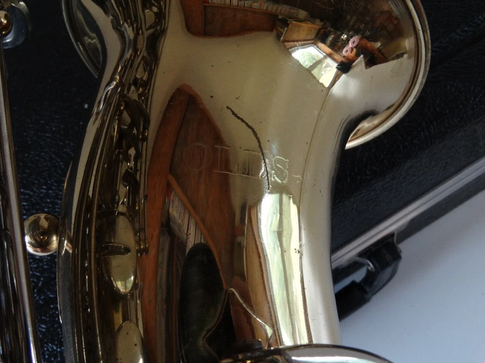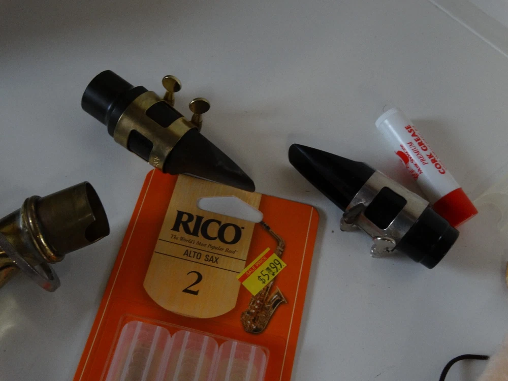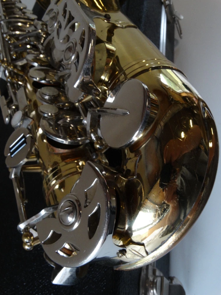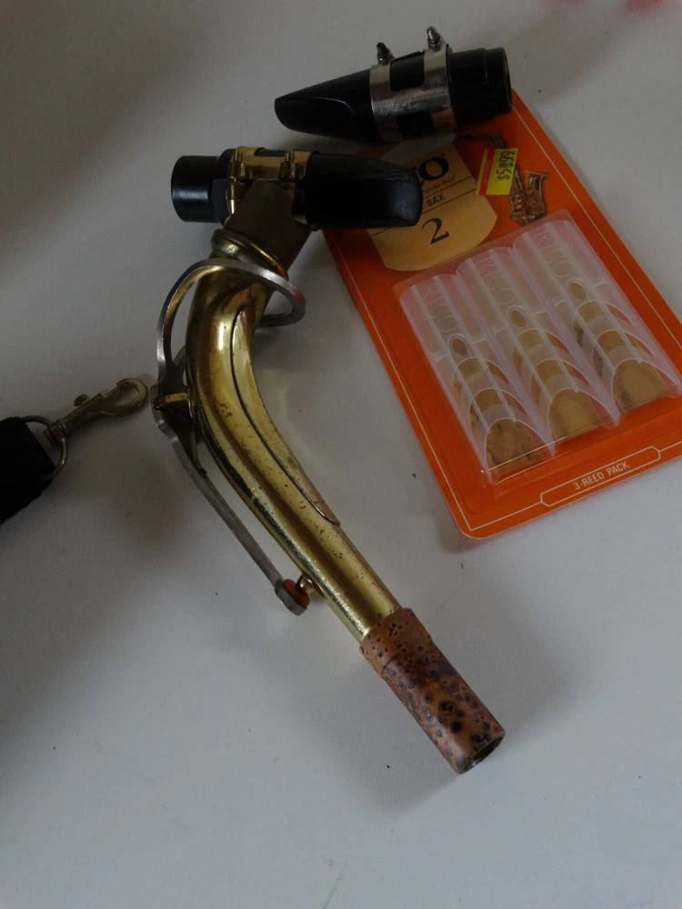 this is as pictured i do not play the sax so it is not tested all the levers seem to move freely and it is in overall nice shape the serial number indicates it is from 1974 there is one hole on the back covered with masking tape not sure what that is about comes with some extra's look at the pictures to see just what is included