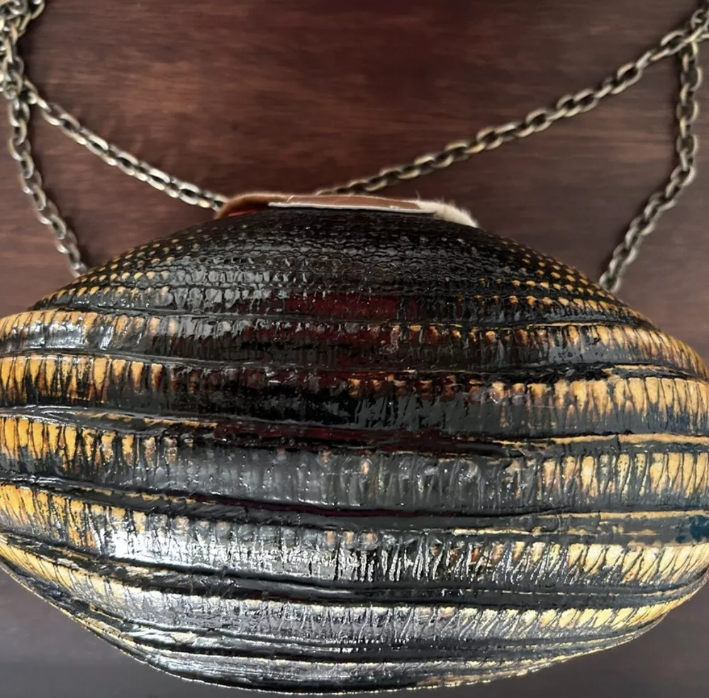 This vintage purse from the 1930s-1940s era is a unique statement piece, featuring a handmade design crafted from real armadillo leather. The brown color and purse style reflect the fashion trends of that period, making it a rare and original accessory. The use of leather adds a touch of luxury to the bag, showcasing the quality and craftsmanship of vintage accessories from that time.