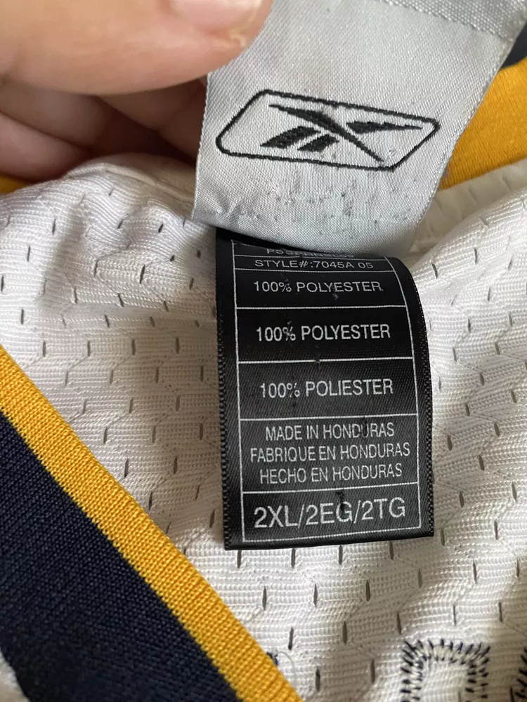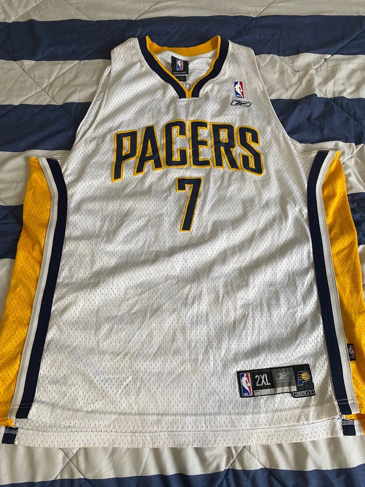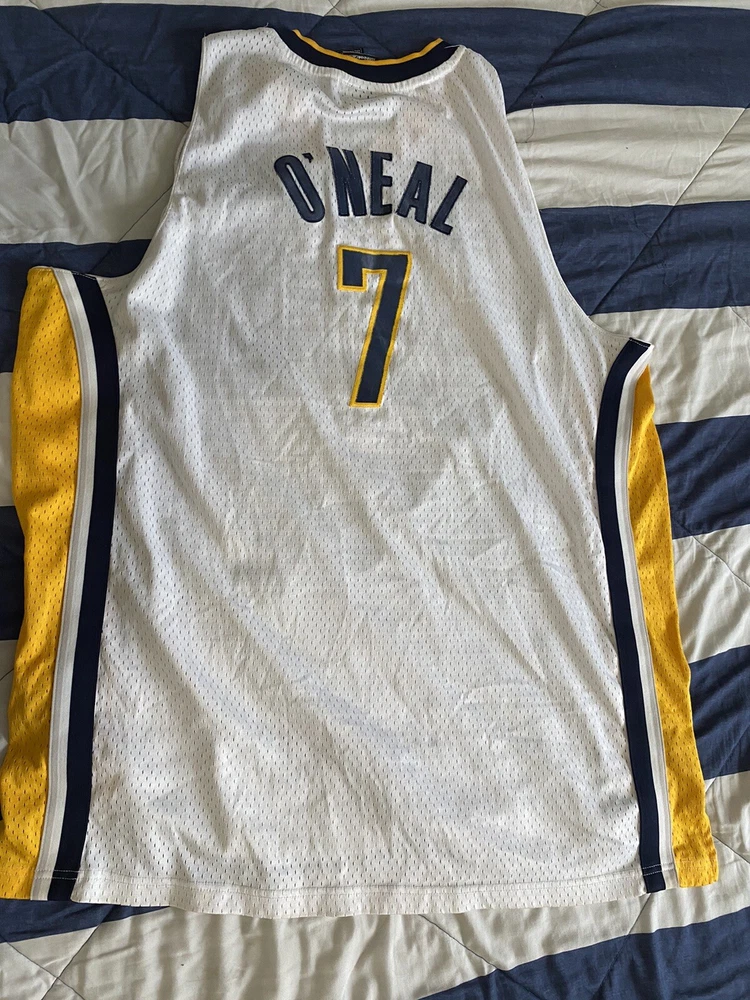 Show your love for the Indiana Pacers and basketball legend Jermaine O'Neal with this vintage Reebok jersey. Made with high-quality materials and in a classic white color, this jersey is perfect for any fan of the National Basketball Association. The size 2XL jersey features the iconic Reebok logo and is officially licensed by the league. Whether you're a collector or simply looking for a stylish addition to your wardrobe, this jersey is a must-have. Swingman jerseys are designed for men and are perfect for basketball enthusiasts. Made in Honduras, this jersey is a high-quality product that will last for years to come. Get your hands on this classic piece of sports memorabilia today!