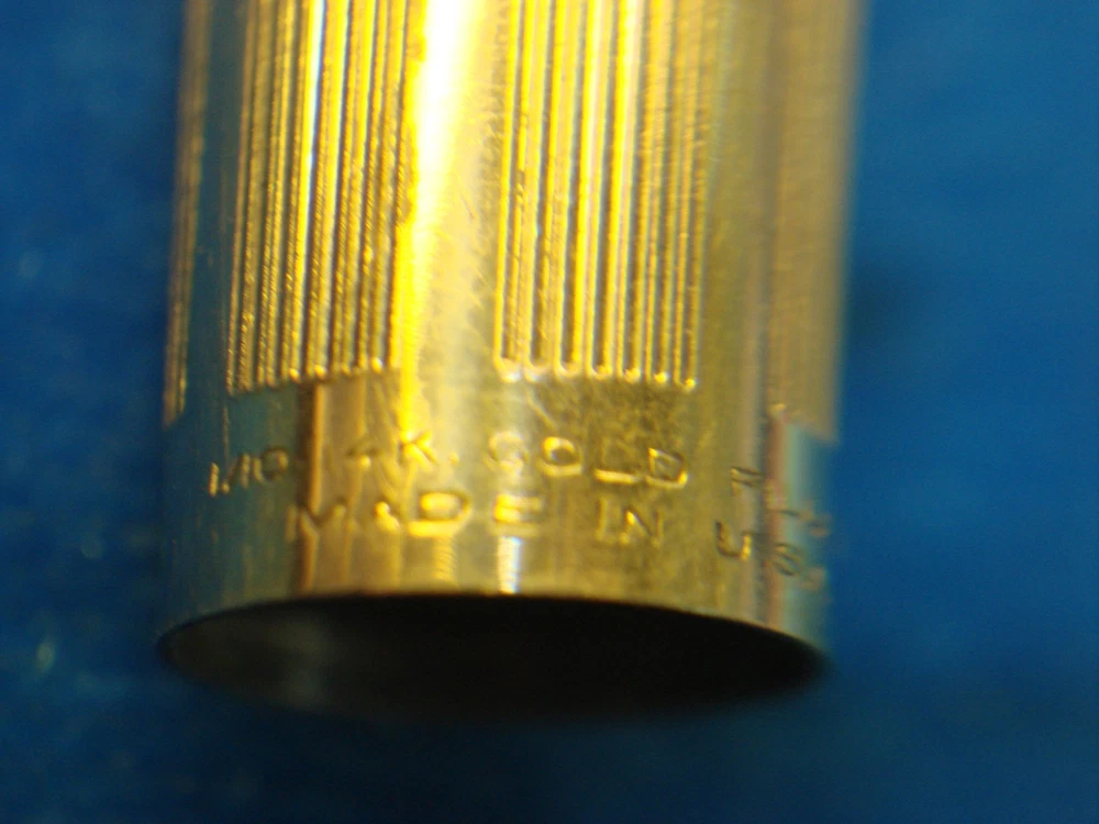 VINTAGE SHEAFFER #600 MECHANICAL PENCIL - 1/10 14K GOLD TOP - WORKS VINTAGE SHEAFFER #600 MECHANICAL PENCIL - 1/10 14K GOLD TOP - WORKS Description ********* ANOTHER TREASURE OUT OF SOME OF ESTATE ITEMS WE PURCHASE DURING THE YEAR SHEAFFER #600 MECHANICAL PENCIL PENCIL IS 5 1/4" IN LENGTH. MECHANISM WORKS PROPERLY. LEAD MEASURES APPROX. .90 MM. NO CRACKS OR DAMAGE (ERASER IS TYPICALLY PETRIFIED). HAS SPARE LEADS IN UPPER END UNDER ERASER "FAS" IS ENGRAVED IN THE BARREL. BE SURE TO CHECK OUT THE PHOTOS. PLEASE NOTE : OUR PRICES ARE FIRM. THEY ARE THE LOWEST WE CAN SELL IT FOR. WE DO NOT ACCEPT OFFERS. IF YOU OFFER..YOU WILL BE BLOCKED Terms, Payment and Shipping Information We currently only ship to the United States and through eBay's Global Shipping Program. We will help with shipping and handling charges on multi-auction wins. Shipping is usually $1.00 per auction after the first, unless there are weight or size issues. You must ask for a combined invoice when you are done buying or bidding. Most folks figure the S/H charges into their total price. A careful eBayer who takes the time to study the photos, reads the entire description, and asks pertinent questions is our best customer. The digital images we display have the most accurate color possible. However, due to differences in electronic displays, we cannot be responsible for variations in color between the actual product and your display. We reserve the right to cancel any bid. Be sure to check out our other items: Listing and template services provided by inkFrog