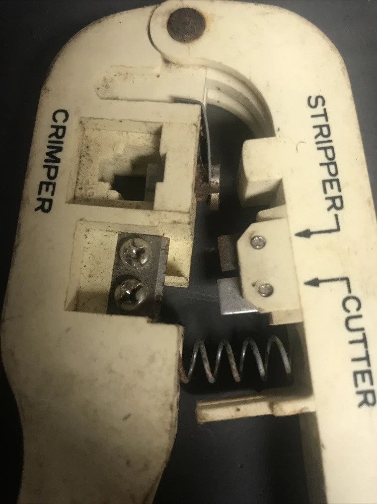 VINTAGE Telephone Crimping Tool, 3 Way Tool Crimped, Cutter and Stripper. Condition is "USED". Shipped with USPS Priority Mail.