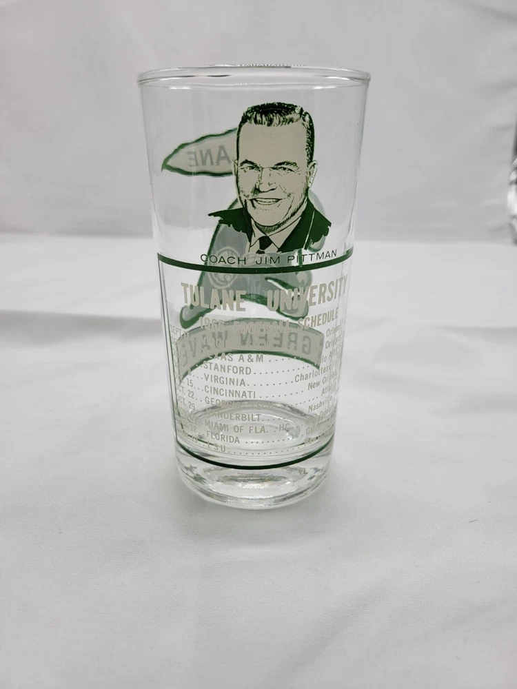 VINTAGE Tulane University Green Wave Football Schedule 1967 Schedule Glass. In great condition. 5.5x 2.75 I have other Tulane glasses listed. I bought this from the estate of a elderly gentleman that worked for Jackson brewery. So I have Jax Beer items going up also. Please ask all questions prior to purchase and take a moment to check out my Ebay store for hundreds of great items