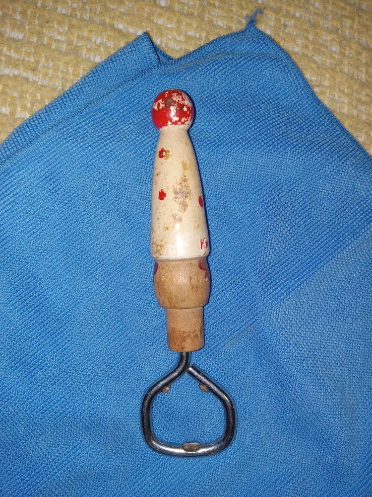 The vintage bottle opener features a wooden figural handle, adding a charming and nostalgic touch to any kitchen or bar decor. The wood figure design not only serves a functional purpose but also doubles as a display piece, bringing a unique and rustic aesthetic to the space. This Breweriana collectible item is a delightful addition for those who appreciate classic barware and retro-inspired pieces.