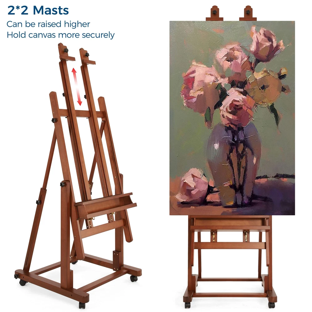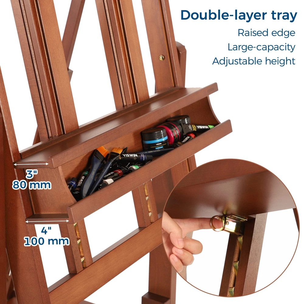 VISWIN Double Mast Extra Large H-Frame Easel, Hold Canvas up to 83", Tilts Flat, Adjustable Solid Beech Wood Heavy Duty Easel Stand with Large Storage, Movable Art Easel for Painting Adult, Artist - W [Premium Beechwood] This extra-large h-frame easel is crafted from German beech wood, ensuring sturdiness and durability. It's designed specifically for master artists and large studios. With an exceptional load-carrying capacity and an extendable double mast, you can create stunning masterpieces on wider and larger canvases. Comes with detailed instructions and a corresponding numbering system on the wood and hardware for easy assembly. [Flexible & Free Adjustments] This convertible painting easel is adjustable from horizontal to vertical with simple knob twists. It's 37" in height when in the horizontal position, perfect for painting techniques that require fluid pigments, like plaster and varnish paintings. By pulling up the center mast, you can put a larger canvas, while the metal ratchet helps to adjust the tray. Whether you want to stand or sit while working, this easel has you covered. [Spacious Double-Layer Tray] The double-layer tray provides ample storage space for all your painting supplies. We've widened the upper layer to accommodate frequently used supplies and increased the depth of the storage box to 4". This allows you to store more brushes, paints, and other art supplies, making your creations more convenient and organized. The multifunctional floor easel is undoubtedly a worry-free choice for artists of all levels. [Movable & Stable] The solid base measures 30" X 31" and equipped with 4 lockable, silent casters. You can easily press down on the brake pads to lock the casters in place and unlock them by pressing them up. Even individuals with little strength can easily move this heavy-duty easel stand without any harsh noises. The inclined vertical structure provides added stability to the easel, ensuring your artwork stays put while you work. [LIFETIME Guarantee] VISWIN is committed to creating products that can meet the needs of all those who love to paint and encourage people to enjoy the fun of creation. Shopping should be enjoyable, we provide every customer a lifetime guarantee. If you have any questions, we will try our best to satisfy you. Shipping We offer FREE shipping on all orders! We use a selection of shipping services such as UPS, FedEx, USPS etc. We only ship to the lower 48 states, no APO/FPO addresses or PO Boxes allowed. Local pickups and combined shipping options are not provided at this time. Return You can return a product for up to 30 days from the date you purchased it. Any product you return must be in the same condition you received it and in the original packaging. Please keep the receipt. Payment We accept payment by any of the following methods: PayPal Please pay as soon as possible after winning an auction, as that will allow us to post your item to you sooner! Feedback Customer satisfaction is very important to us. If you have any problem with your order, please contact us and we will do our best to make you satisfied. Contact Us If you have any queries, please contact us via ebay. We usually respond within 24 hours on weekdays. Please visit our eBay store to check out other items for sale! Thank you for shopping at our store.