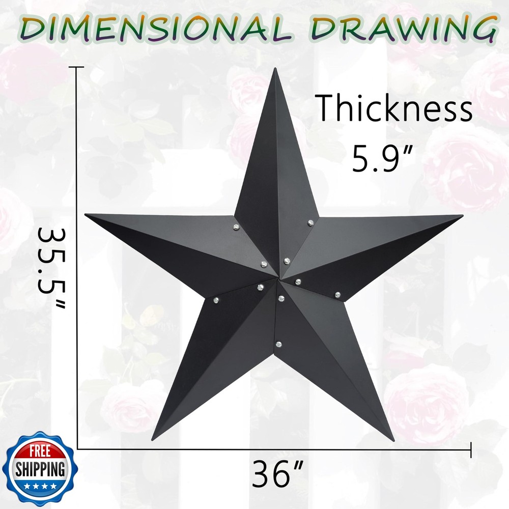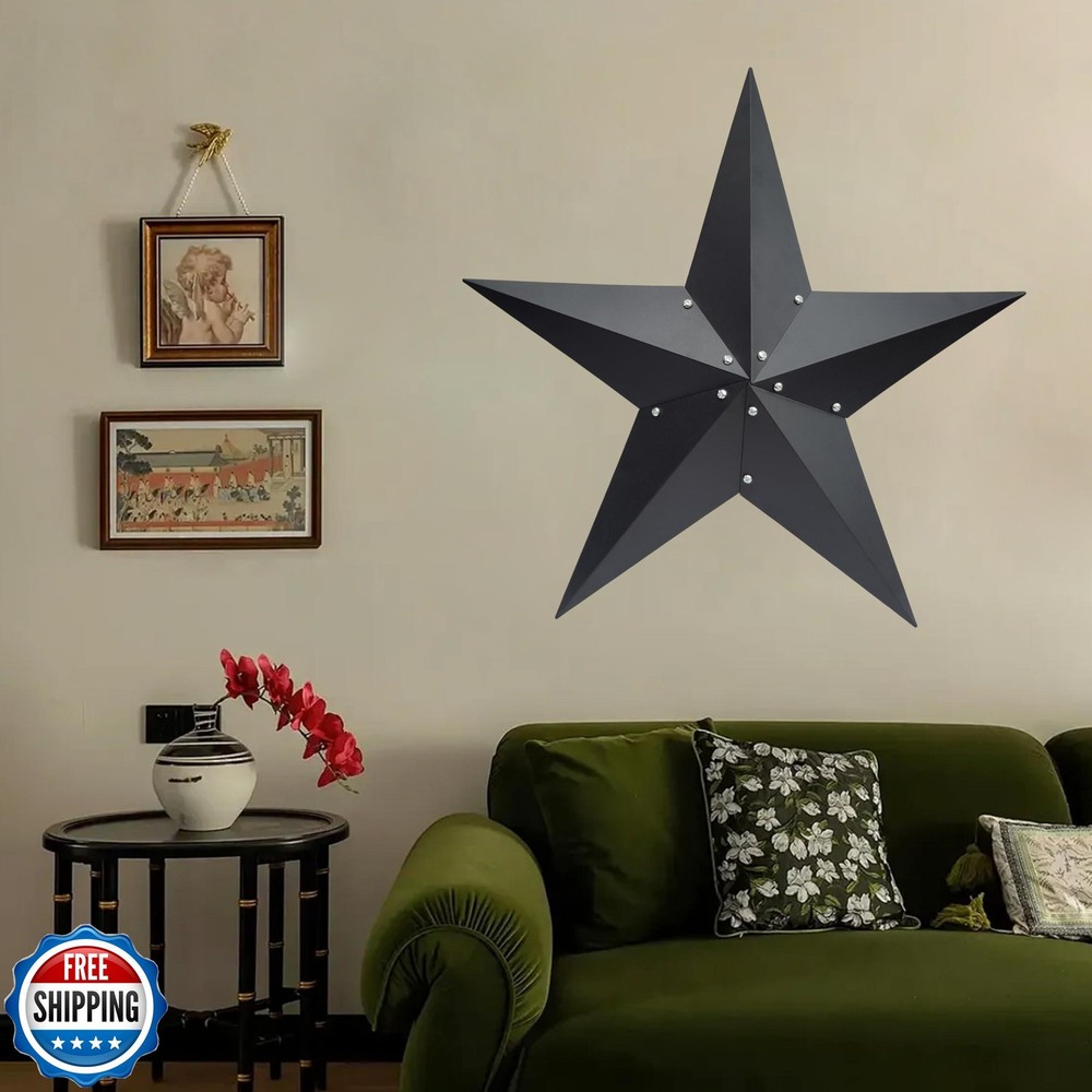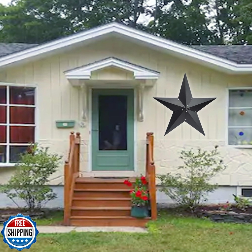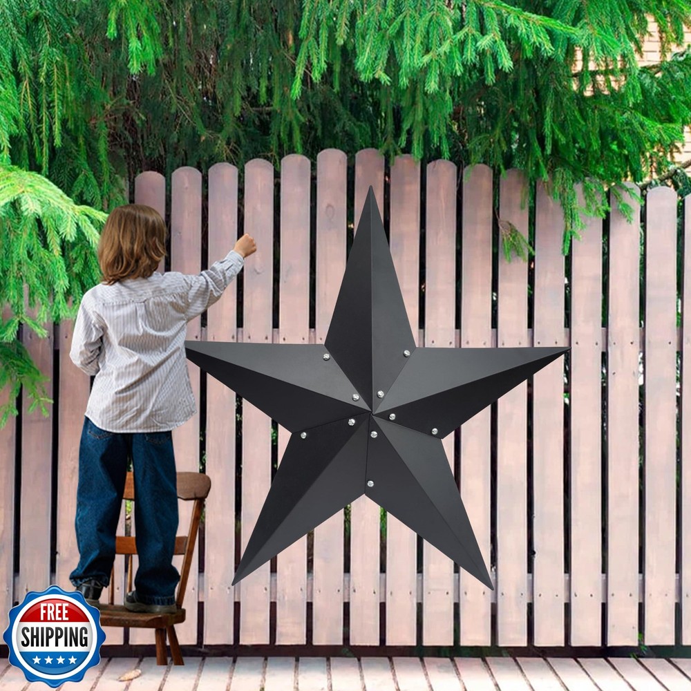 VIVICOMFY 36" Large Barn Star-Black Barn Star Outdoor Decoration-Metal Star for Outside Texas Stars Art Rustic Vintage Western Country Home Farmhouse Primitive House Decor- Primitive Wall Décor Features 【METAL STAR】These decorative stars are handcrafted from iron and are treated with a special powder coating, giving that vintage and rustic look, while protecting it from rust and wear. 【RUSTIC DECOR】Metal stars are very suitable for country houses, farmhouses or any type of house,These stars add a unique texture and rustic charm to the metal wall home decoration with nature as the theme. 【VIVID DESIGN】Barn stars have now become a popular home decoration as people look to the past for more modern design ideas. this star adornment is sure to be an eye catcher. 【EASY TO HANG】There is a hook to choose from on the back of the metal star for easy hanging. 【PERFECT GIFT! 】Metal stars can be used not only as gifts for family and friends, but also as decorations and ideal gifts for housewarming parties, birthdays, Christmas, holidays, Columbus Day, etc. 【100% SATISFAATION GUARANTEED】We are committed to providing the best experience for our customers. If you have any questions about our products, please feel free to contact us. Shipping Free & Fast Shipping: We offer free shipping to most of the USA with a normal delivery time of 3-7 days. However, due to the current situation, additional delivery time (up to 3 weeks) may be required for some items. Alternative Carriers: We may use alternative carriers (e.g., USPS, FedEx, UPS) to ensure your package arrives safely and on time. Due to the use of multiple carriers, we are unable to provide a tracking number automatically. Handling Time: Orders are processed and shipped within 1-2 business days of receiving cleared payment. Shipping Restrictions: Shipping to Alaska, Hawaii, Puerto Rico, Guam, and other US territories may incur shipping charges or delivery restrictions. Please contact us before ordering, or your order can be refunded/cancelled. State Restrictions: Certain items may not be shipped to California due to state regulations. Contact for Tracking Updates: If you require tracking updates or have any concerns about the delivery of your order, please feel free to contact us, and we will be happy to assist you. Return Policy 30-Day Hassle-Free Returns: If you are not completely satisfied with your purchase, you can return the item for free within 30 days of receiving it for a full refund or exchange. Easy Return Process: Contact us, and we will provide you with a prepaid return shipping label and detailed instructions. No Restocking Fee: There are no restocking fees for returns. However, the buyer is responsible for return shipping costs if the return is not due to a seller"s error. Refund Processing: Refunds will be processed within 1 business day of receiving the returned item in its original condition. Feedback Your feedback is extremely important to us. We strive to provide the best products and customer service possible. If you are satisfied with your purchase, please take a moment to leave us a positive review. If you have any concerns or issues with your order, please contact us before leaving negative feedback. We are committed to resolving any problems and ensuring your satisfaction. Contact Us If you have any questions or concerns, please feel free to reach out to our customer support team. You can contact us through the eBay messaging system. We are available Monday to Friday, 9:00 am to 5:00 pm EST, and we will do our best to respond to your inquiry within 24 hours. Thank you for supporting our small family business!