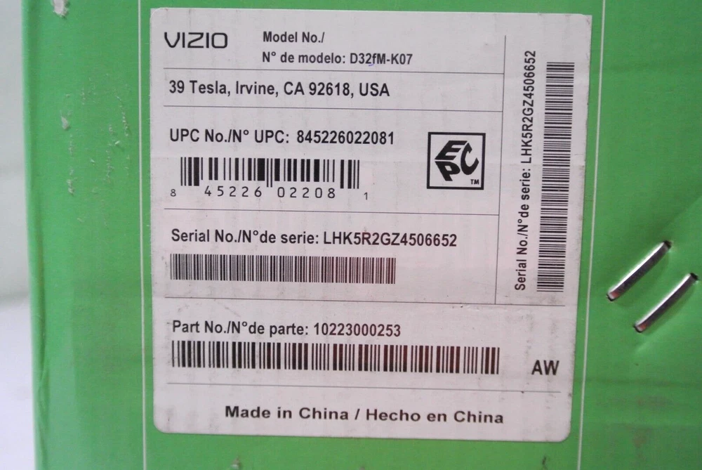 Item available today is the, VIZIO D32FM-K07 32" D-Series FHD Smart TV . This is a used tv . Tv is in great condition. Ready for use. Please see photos for more details. Items in photos are what come with the listing. Thank you for shopping small business. Terms of Sale Listing is for item and/or accessories shown in photos only. Some states may require a tax be charged at the time of checkout, this is eBay automated. We ship and answer questions Mon-Fri 8am-4pm EST . We stand behind our products and would be happy to assist you if you experience an issue. Please contact us first. We ship to your confirmed PayPal address only using UPS or USPS. Items over $200 may require signature upon delivery. There are no returns on items sold for parts. A RESTOCK FEE UP TO 20% MAY BE CHARGED FOR RETURNS THAT ARE NOT OF FAULT OF THE SELLER OR ITEMS NOT RETURNED IN THE SAME CONDITION. Thank you for shopping small business! Shipping Information Only ships within the Continental United States with one business day processing time. LM 11 /15/2024 ( E3 )