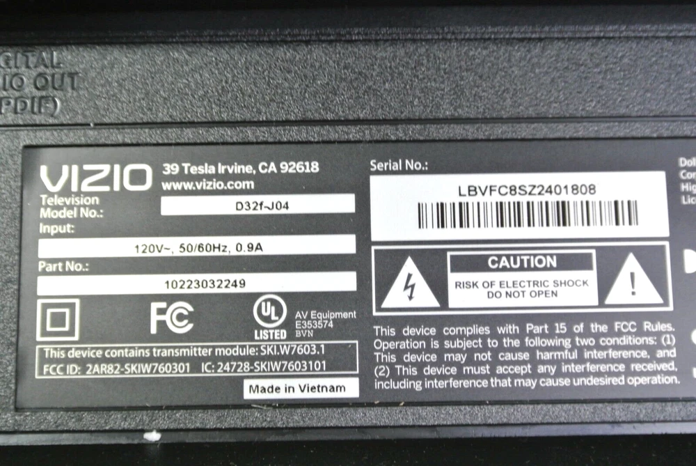 Item available today is the, VIZIO D32f-J04 32 inch 1080p LED Smart TV . NO STAND NO REMOTE. This is a used tv . TV DOES NOT COME WITH A STAND OR A REMOTE . TV is in great condition. Ready for use. Please see photos for more details. Items in photos are what come with the listing. Thank you for shopping small business. Terms of Sale Listing is for item and/or accessories shown in photos only. Some states may require a tax be charged at the time of checkout, this is eBay automated. We ship and answer questions Mon-Fri 8am-4pm EST . We stand behind our products and would be happy to assist you if you experience an issue. Please contact us first. We ship to your confirmed PayPal address only using UPS or USPS. Items over $200 may require signature upon delivery. There are no returns on items sold for parts. A RESTOCK FEE UP TO 20% MAY BE CHARGED FOR RETURNS THAT ARE NOT OF FAULT OF THE SELLER OR ITEMS NOT RETURNED IN THE SAME CONDITION. Thank you for shopping small business! Shipping Information Only ships within the Continental United States with one business day processing time. LM 09 /24/2024 ( D3 )