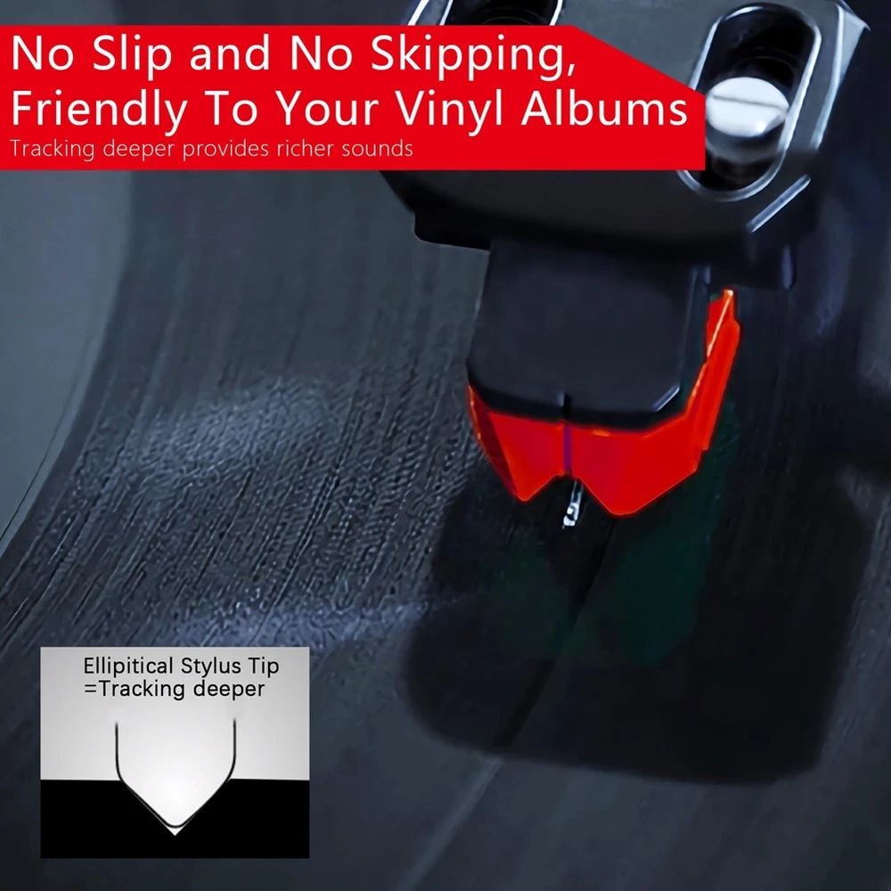 -VMN95E Elliptical Turntable Stylus Replacement, Diamond Record Player8325 Ideal Replacement for Turntables: The AT-VMN95E elliptical stylus is designed specifically for the AT-LP120X turntables. Featuring a striking red housing, this stylus not only enhances the functionality but also the aesthetics of your turntable, making it a perfect blend of style and performance. Enhanced Sound Quality: Experience superior audio fidelity with the AT-VMN95E replacement stylus. Engineered to deliver crystal-clear sound and precise sound reproduction, this stylus is essential for any vinyl record enthusiast looking to get the most out of their vinyl collection. Universal Compatibility with VM95 Series: Compatible with all six models of the VM95 Series cartridges, the AT-VMN95E uses the same electromagnetic engine, allowing for a seamless upgrade or replacement. This versatility ensures you can maintain optimal performance across multiple turntable setups. Optimal Tracking and Reduced Distortion: The AT-VMN95E stylus is designed to operate within a tracking pressure range of 2.5g to 3.5g. This optimal tracking ability enhances frequency and phase responses while significantly reducing distortion, ensuring a pure and enjoyable listening experience. Colour: Red Material: plastic Note: There may be slight color difference or difference in the actual product, which not affect the use Package Contents: 1 x Turntable Stylus