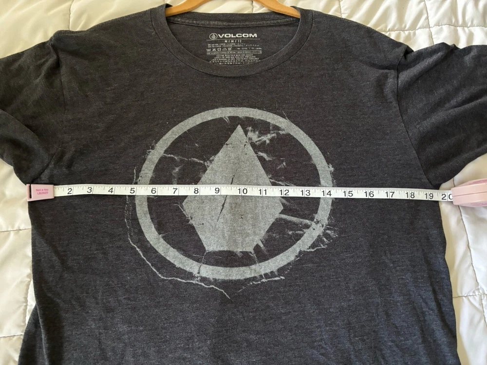 Young Men's Volcom - Size Medium/12 - tee-shirt. Color: Black & Gray 50% cotton - 50% Polyester. Measurements: Width: 19.5" Length (From armpit to bottom): 15" Very good pre-owned condition. No rips, tears, or stains. Non-smoking environment. All clothes are measured lying flat. Please check the photos for measurements and conditions. I am happy to combine shipping on multiple items. Contact me before checking out and I will combine your items. This cannot be done after you have checked out. To the best of my ability, I describe and photograph the condition and measurements of each item. Sometimes colors may be slightly different due to different computer screens, lighting, or cell phones. Be sure to check the description. Don't hesitate to ask questions also. All sales are final unless the item is not as described. Check my feedback and bid with confidence. Thank you for looking, and follow me as new items are added weekly.
