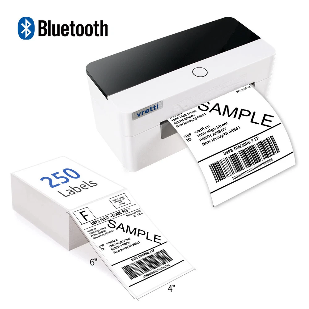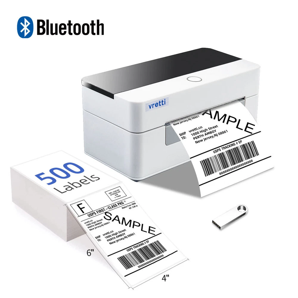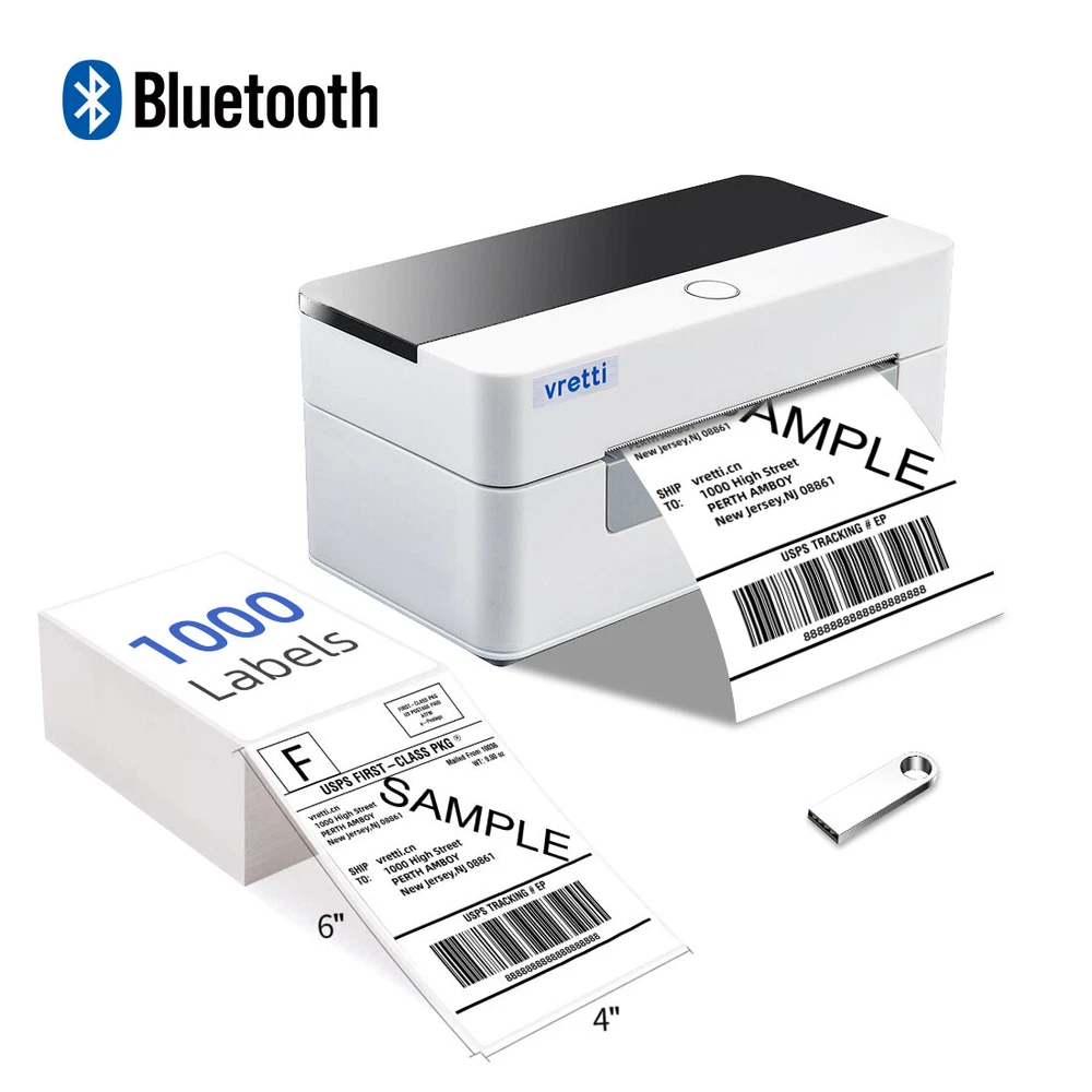 Purchase Notes vretti Commercial Grade D463B Thermal Label High Speed Bluetooth Printer SHIPS VIA USPS/UPS 2-6 BUSINESS DAY DELIVERY Label Printer Features Suitable for Most Thermal Direct Label -including Warehouse labels, Shipping labels, Amazon FBA Labels, UPS, USPS,FedEx etc. No need to buy carbon rods, saving you a lot of money. One minute to set up, Money and Time Saver. Work with All Windows, Mac. Printing speed up to 152mm/s. Printing 5000 sheets per hour. 24 hours of continuous high-speed printing. Fashionable and elegant appearance design. Print width: 1-4 inches. Suitable for label paper with a width of 1 to 4 inches. For example: 2x2, 2.25x1.25, 4x6 labels. Broad application range E-commerce sellers, Courier services, Logistics services... Retail Labels, Food Labels... Carton labels, warehousing logistics... Hassle-free shopping experience Hassle-free shopping experience, professional after-sales team provides remote technical support. For any installation problems, unclear printing, size setting problems, blank pages printed, software compatibility problems, system compatibility problems, feel free to contact us. Label Printer Packing List 1x VRETTI D463B Thermal Label Printer 1x USB Cable (Connect the printer to your computer or laptop) 1x Power Plug 1x Power Adapter 1x User manual 1X U Disk(It contains product Driver software and diagnostic tools, etc.) 1x After-sale card Label Printer Specification Resolution: 203 DPI Printing method: Direct Thermal Max.print speed: 152 mm (6") / s Max. Max.print width: 108 mm (4.25”) Max.print length: 1778 mm Media type: Continuous, gap, black mark, fan-fold and punched hole Interface: USB & Bluetooth Dimension: 185 mm (L) x 85 mm (W) x 85 mm (H) Weight: 775g Print head life: 30 km Input: AC 100-240V Output: DC 24V/ 2.5A Shipping Item will be shipped within 1 business days after confirmed payment. Returns If you need return, please send us a message through eBay, let us know the detailed problem and send us some pictures for confirmation. Contact us We typically reply to emails within 24 hours (EXCLUDING weekends and public holidays). Please contact us if you have any questions or problems before leaving a neutral or negative feedback. Just contact us using the " Ask the seller a question" link on eBay. We pride ourselves in our customer services. We also believe that good communication can resolve most if not all problems. After-sales service If you encounter any problems while using the product, please contact us. Our engineers can help you set up the printer step by step,We are committed to providing the best customer service and providing you with a hassle-free shopping experience. Feedback We appreciate your positive feedback and we will leave positive feedback immediately for you after receiving yours. We would appreciate if you would leave us positive feedback once you confirmed the item is received and in good working order. If you are not satisfied with our products, please contact us before leaving a neutral or negative feedback. We will tryour utmost to resolve the issue. It would be much appreciated if you can award us with "five stars" for "Detailed Seller Ratings". Thank you!