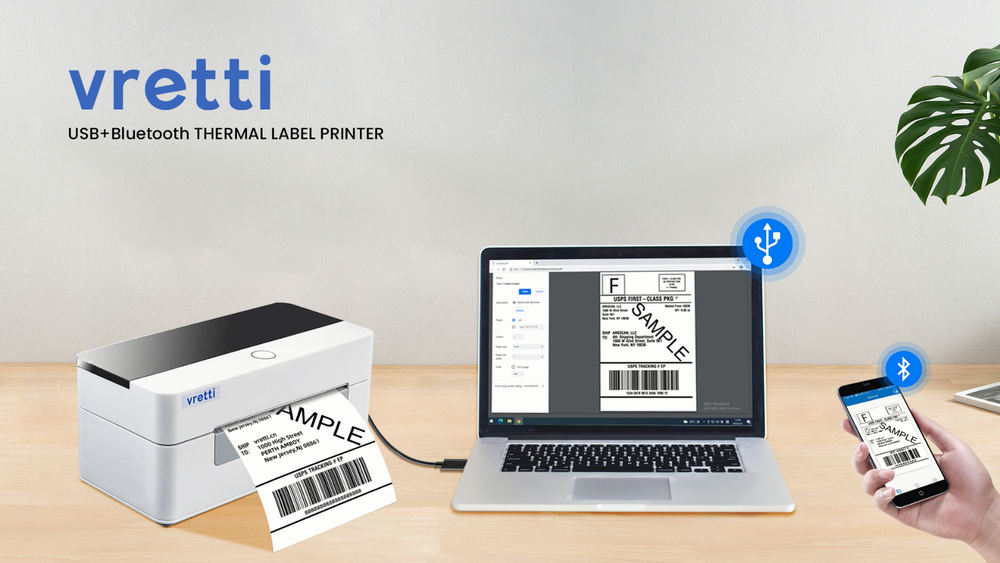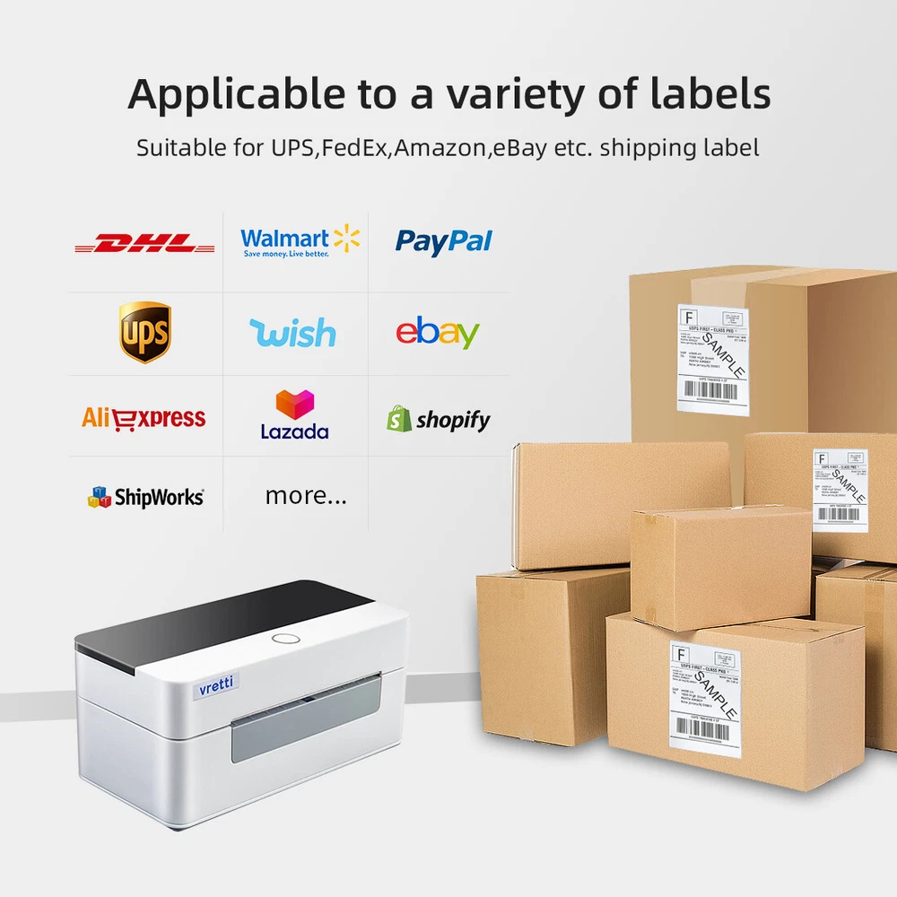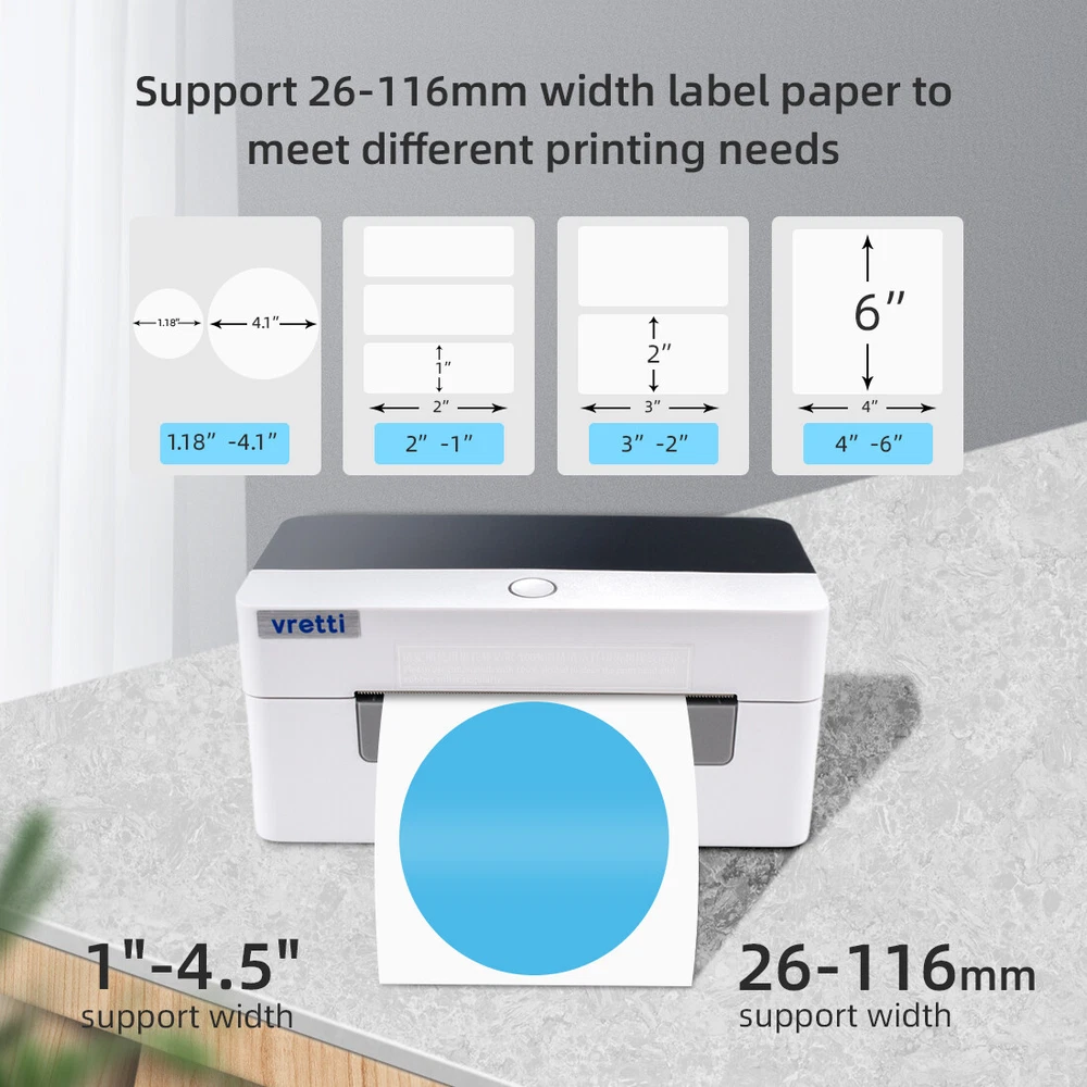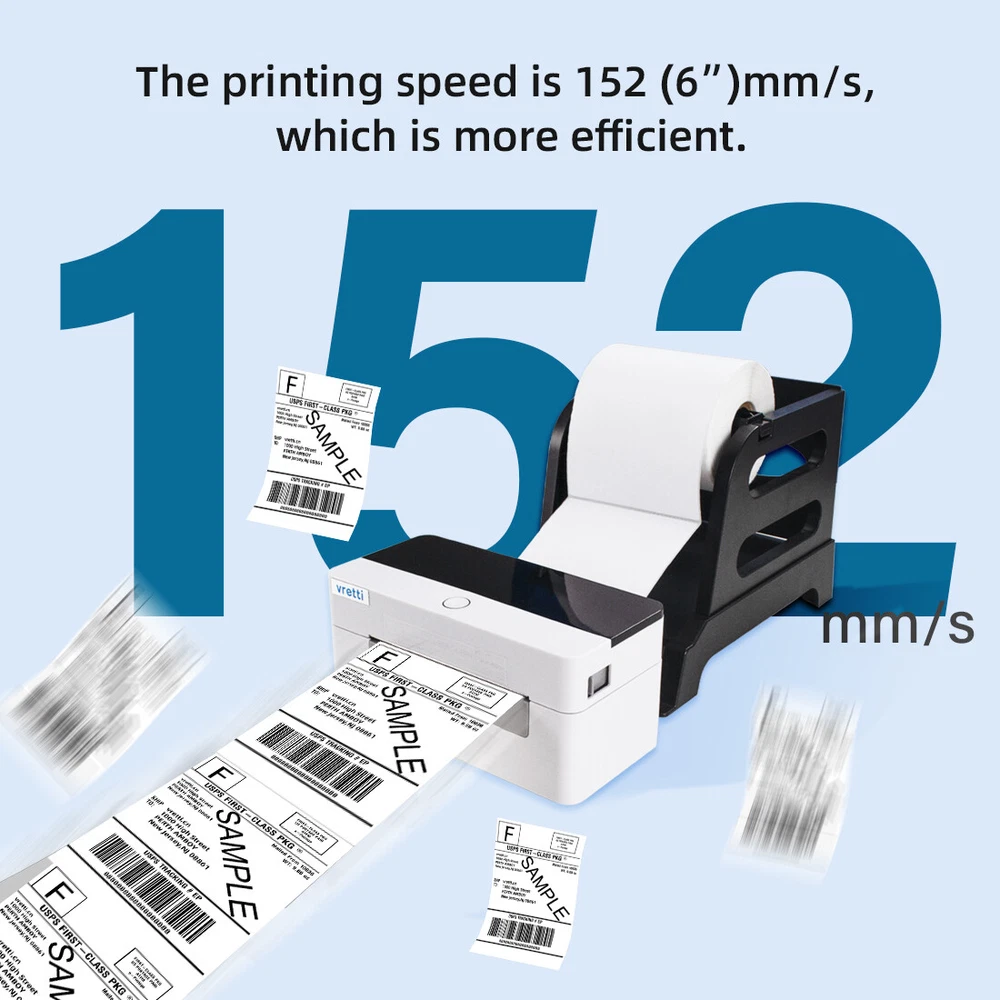Purchase Notes vretti Commercial Grade D463B Thermal Label High Speed Bluetooth Printer SHIPS VIA USPS/UPS 2-6 BUSINESS DAY DELIVERY Label Printer Features Suitable for Most Thermal Direct Label -including Warehouse labels, Shipping labels, Amazon FBA Labels, UPS, USPS,FedEx etc. No need to buy carbon rods, saving you a lot of money. One minute to set up, Money and Time Saver. Work with All Windows, Mac. Printing speed up to 152mm/s. Printing 5000 sheets per hour. 24 hours of continuous high-speed printing. Fashionable and elegant appearance design. Print width: 1-4 inches. Suitable for label paper with a width of 1 to 4 inches. For example: 2x2, 2.25x1.25, 4x6 labels. Broad application range E-commerce sellers, Courier services, Logistics services... Retail Labels, Food Labels... Carton labels, warehousing logistics... Hassle-free shopping experience Hassle-free shopping experience, professional after-sales team provides remote technical support. For any installation problems, unclear printing, size setting problems, blank pages printed, software compatibility problems, system compatibility problems, feel free to contact us. Label Printer Packing List 1x VRETTI D463B Thermal Label Printer 1x USB Cable (Connect the printer to your computer or laptop) 1x Power Plug 1x Power Adapter 1x User manual 1X U Disk(It contains product Driver software and diagnostic tools, etc.) 1x After-sale card Label Printer Specification Resolution: 203 DPI Printing method: Direct Thermal Max.print speed: 152 mm (6") / s Max. Max.print width: 108 mm (4.25”) Max.print length: 1778 mm Media type: Continuous, gap, black mark, fan-fold and punched hole Interface: USB & Bluetooth Dimension: 185 mm (L) x 85 mm (W) x 85 mm (H) Weight: 775g Print head life: 30 km Input: AC 100-240V Output: DC 24V/ 2.5A Shipping Item will be shipped within 1 business days after confirmed payment. Returns If you need return, please send us a message through eBay, let us know the detailed problem and send us some pictures for confirmation. Contact us We typically reply to emails within 24 hours (EXCLUDING weekends and public holidays). Please contact us if you have any questions or problems before leaving a neutral or negative feedback. Just contact us using the " Ask the seller a question" link on eBay. We pride ourselves in our customer services. We also believe that good communication can resolve most if not all problems. After-sales service If you encounter any problems while using the product, please contact us. Our engineers can help you set up the printer step by step,We are committed to providing the best customer service and providing you with a hassle-free shopping experience. Feedback We appreciate your positive feedback and we will leave positive feedback immediately for you after receiving yours. We would appreciate if you would leave us positive feedback once you confirmed the item is received and in good working order. If you are not satisfied with our products, please contact us before leaving a neutral or negative feedback. We will tryour utmost to resolve the issue. It would be much appreciated if you can award us with "five stars" for "Detailed Seller Ratings". Thank you!