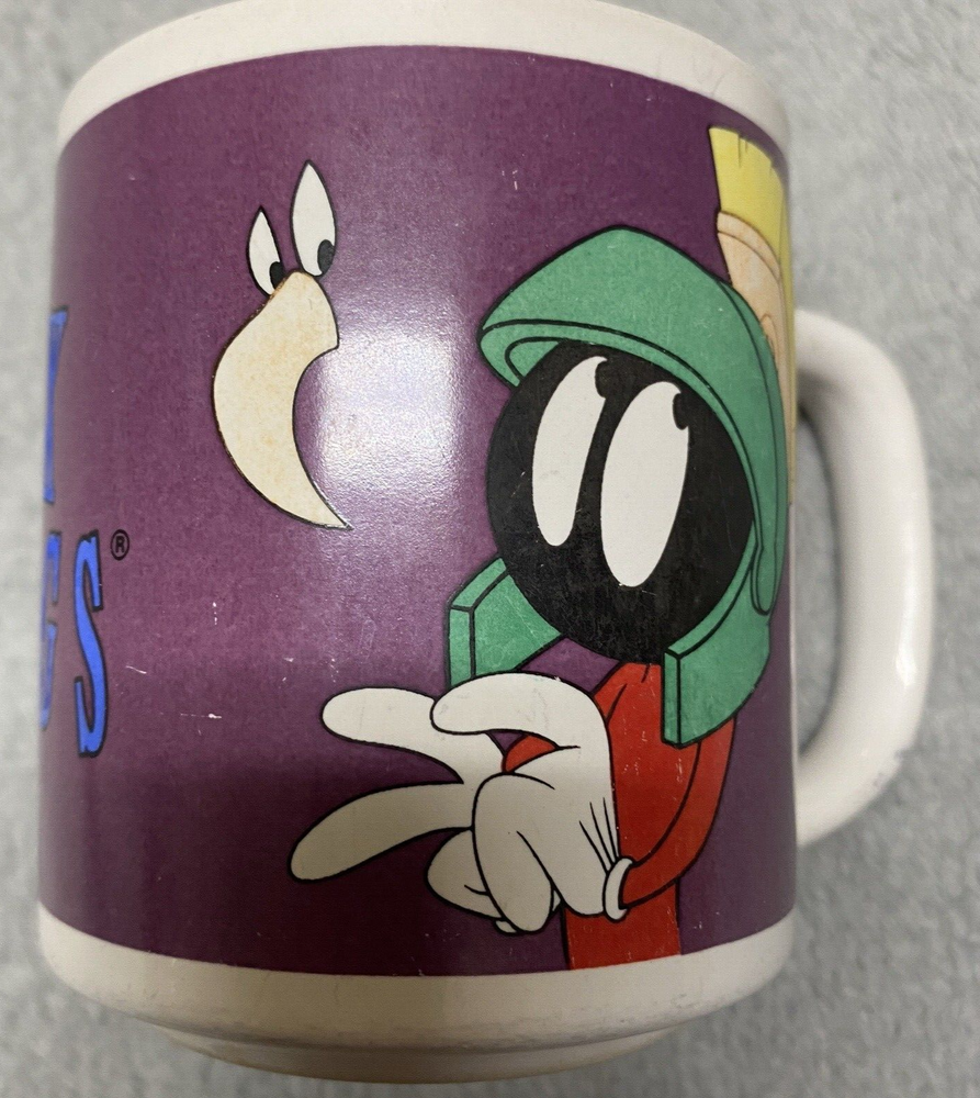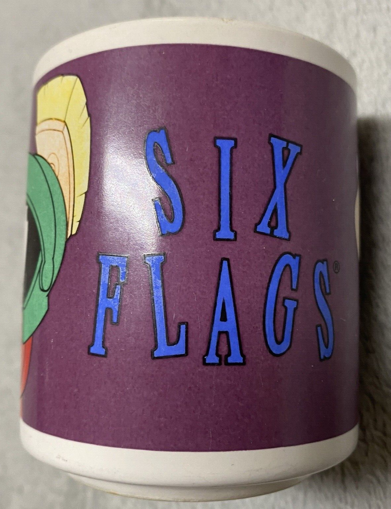 VTG 1994 Six Flags Park Marvin The Martian Graphic Coffee Cup Mug Looney Tunes Flaw - See minor chip on top rim shown in the photos for the actual item. Feel free to contact me with any questions. This vintage coffee mug features Marvin the Martian and Instant Martians from the Warner Bros franchise, perfect for fans of 90s cartoons and TV characters. The ceramic and porcelain mug has a multicolor design with a 3.2 inch diameter and is suitable for hot and cold beverages. With a height of 3.6 inches and width of 4.5 inches, it weighs 10.2 ounces and holds a service for one. The mug is decorated with a fun and fantasy theme, including cartoon and TV characters, animation, advertising, and film and TV elements. It is also microwave and dishwasher safe, has a convenient handle, and is from the Six Flags Park collection. This collectible item was manufactured in 1994 and is listed as vintage. It is perfect for all occasions and is sure to be a favorite for any coffee or tea lover. Shop our store with confidence as we offer 30-day returns on all purchases. Additionally you can save money by making multiple purchases to take advantage of our discount shipping policy. You will pay the highest shipping cost for a single item in your cart and $3 for each additional item.
