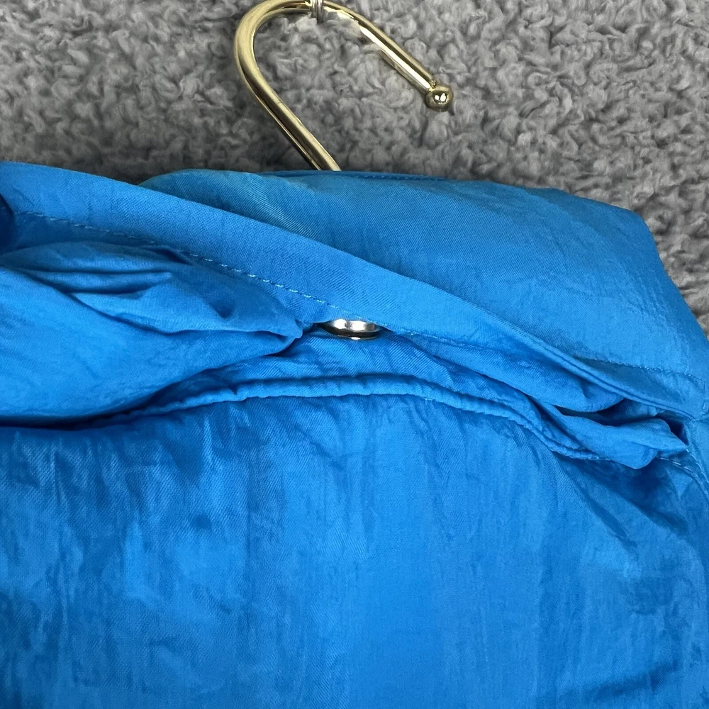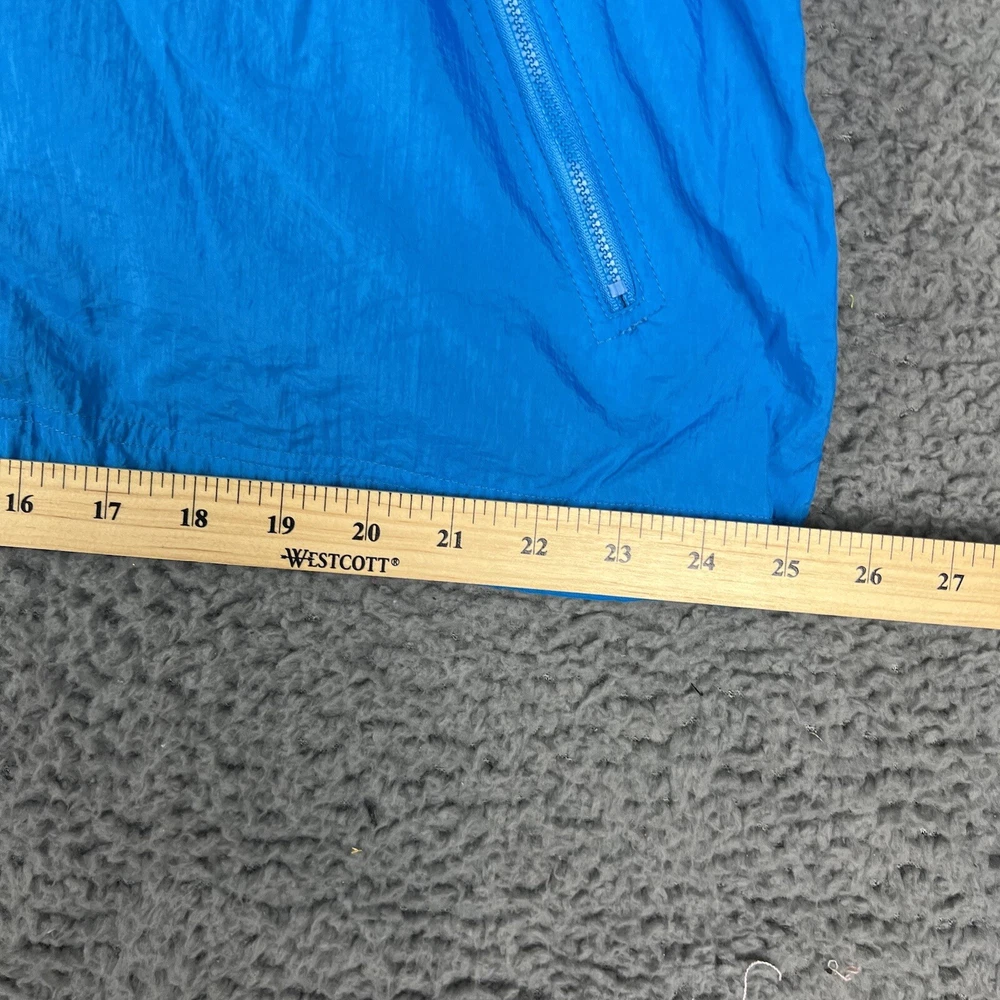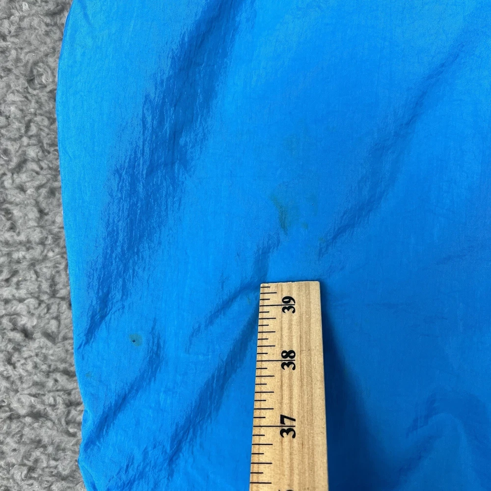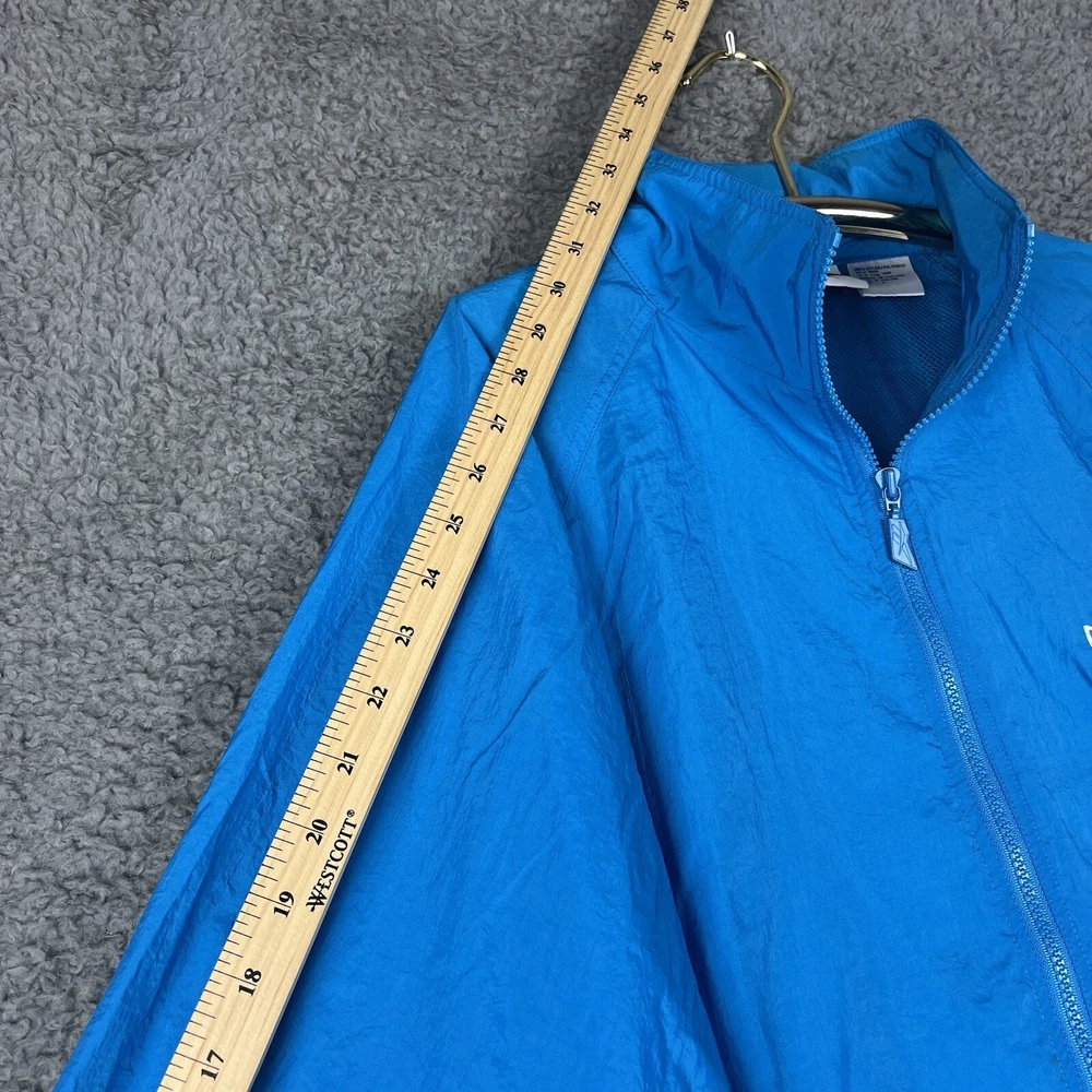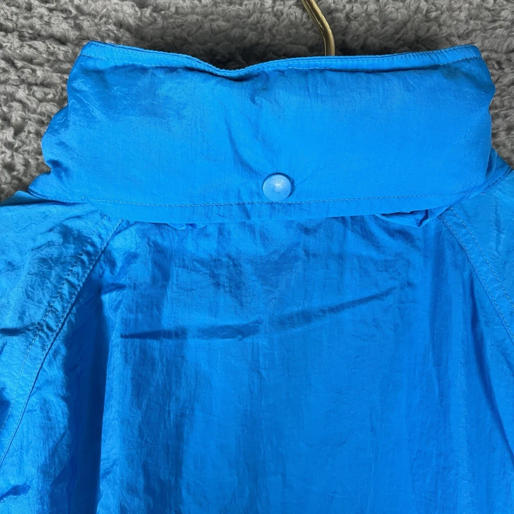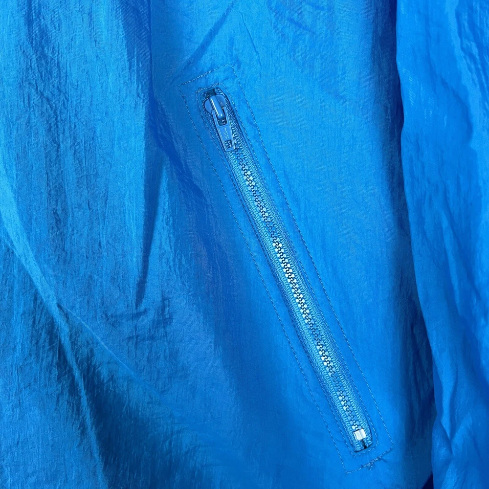 This vintage Reebok windbreaker is the perfect addition to any casual sportswear or beach outfit. The blue nylon material and full zip design give it a classic 90s look. The loose fit and hood included provide comfort and protection against the wind. This original piece was made in Thailand and is sized for men's regular fit. The Reebok brand is known for quality and style, making this windbreaker a great find for any vintage clothing enthusiast. Don't miss out on the chance to add this unique piece to your collection. ** Note: vintage Reebok includes the hood inside of a “secret pocket” in the collar as seen in pics 15, 16 & 17.