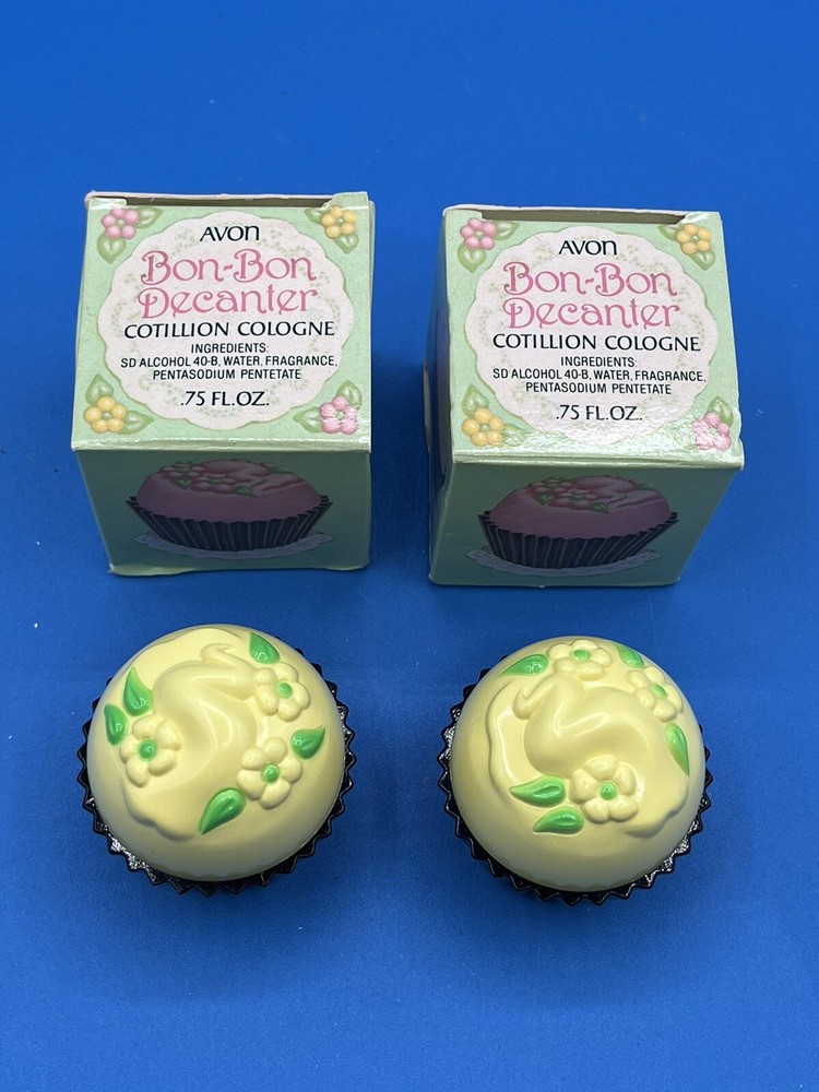 2 VTG Avon Cologne Bon Bon Yellow Decanters .75 Fl Oz. New old stock in box