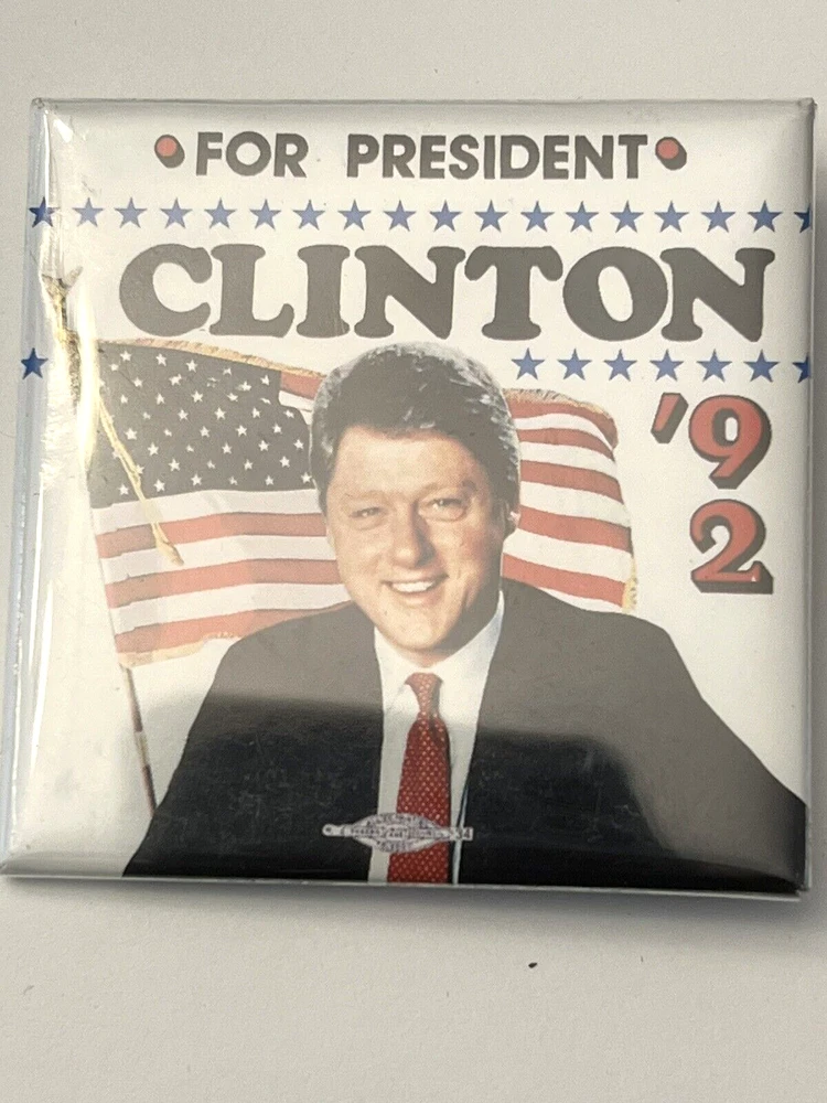 Capture a piece of political history with these vintage Bill Clinton campaign buttons. Dating back to his 1992 presidential run, these four large buttons, each measuring between 2 to 2.5 inches, are emblematic of the era's political spirit. Made in the United States, they reflect the country's stance on political campaigns during the early '90s. Ideal for collectors and enthusiasts of political memorabilia, these buttons stand as a testament to Clinton's influential presidency. Whether you're a fan or a historian, these pins serve as a unique addition to any collection, preserving the legacy of one of America's most notable political figures.