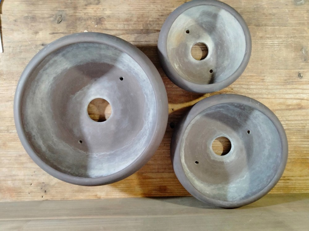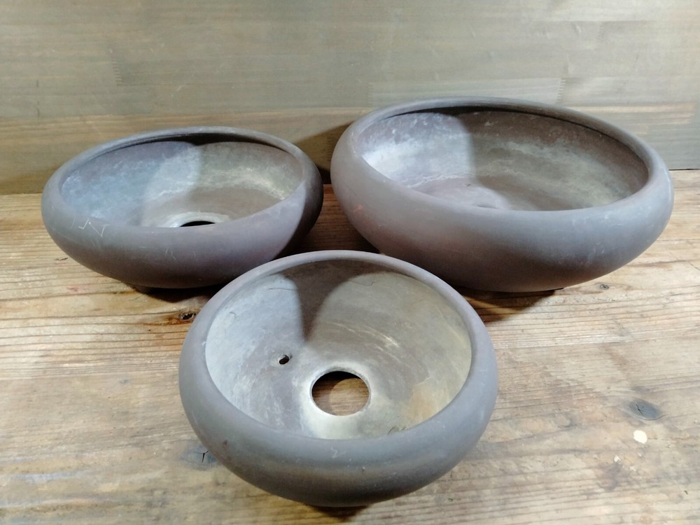 VTG Bonsai Tree Pots Unglazed Round Set of 3 Dia.Approx 12.2 in / 31 cm Medium