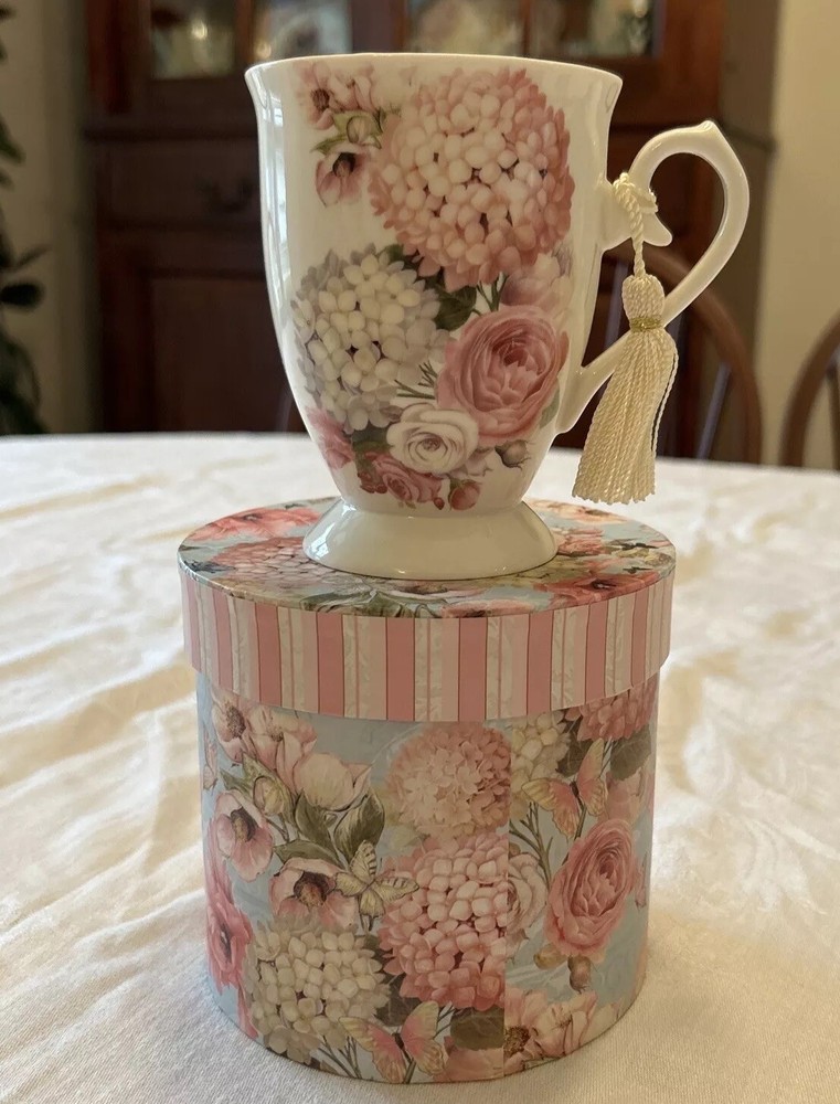 VTG Brivogue Victorian Style Fine Porcelain Tea Cup and Gift Box Hydrangea This beautiful gift set from Brivogue is perfect for any occasion. The delicate porcelain tea cup and matching gift box are adorned with a lovely hydrangea design, adding a touch of Victorian style to your tea time. The set is perfect for adult recipients and is suitable for all occasions. Crafted in China, this vintage set is sure to impress. The set includes a tea cup and gift box, making it an ideal gift for women who appreciate the finer things in life. The color of the set is pink, which adds a touch of elegance to any tea time. This set is perfect for those who love antique and vintage items and is sure to be a cherished addition to any collection.