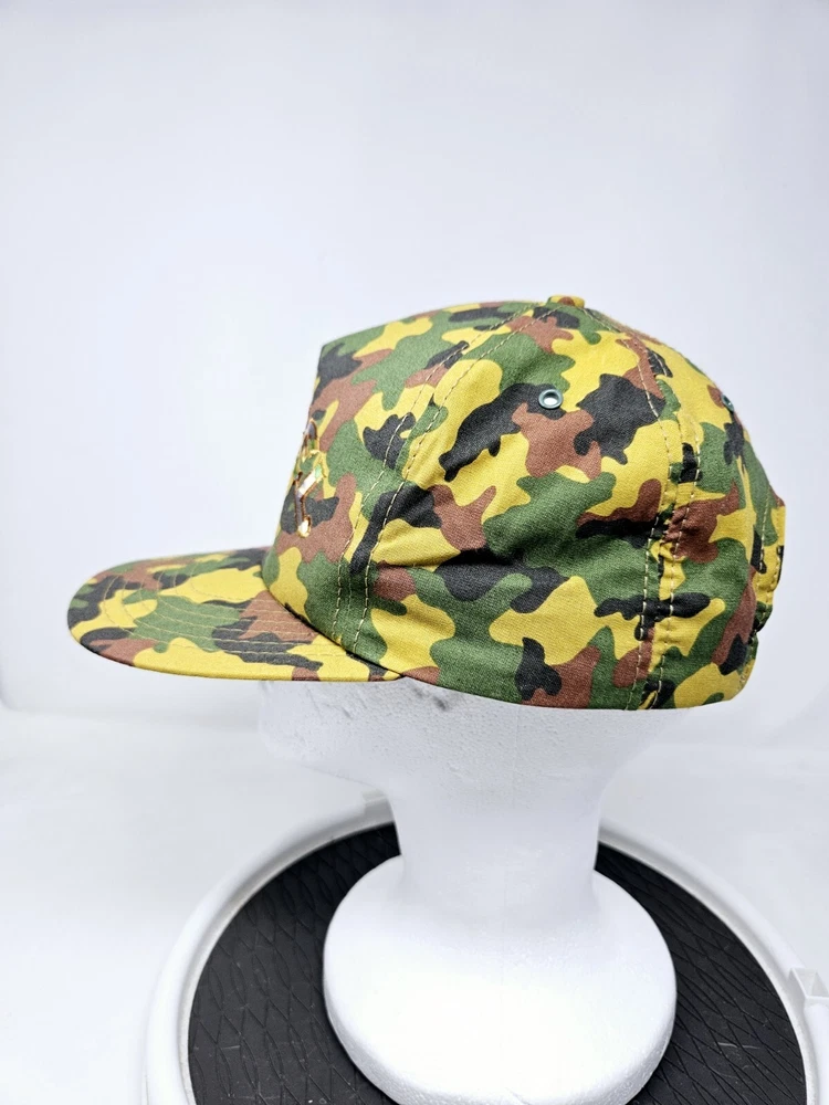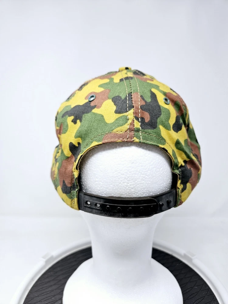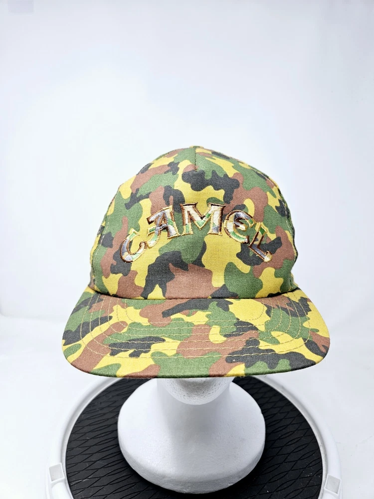 Theme: USA, 90s Department: Unisex Adults Brand: Camel Material: Cotton Country/Region of Manufacture: United States Style: Snapback Features: Adjustable, Breathable, Lightweight, UV Protection, Wide Brim Fabric Type: Canvas Color: Multicolor Signed: No Occasion: Casual, Party/Cocktail, Travel, Workwear Size: One Size Season: Fall, Spring, Summer, Winter Vintage: Yes Pattern: Camouflage