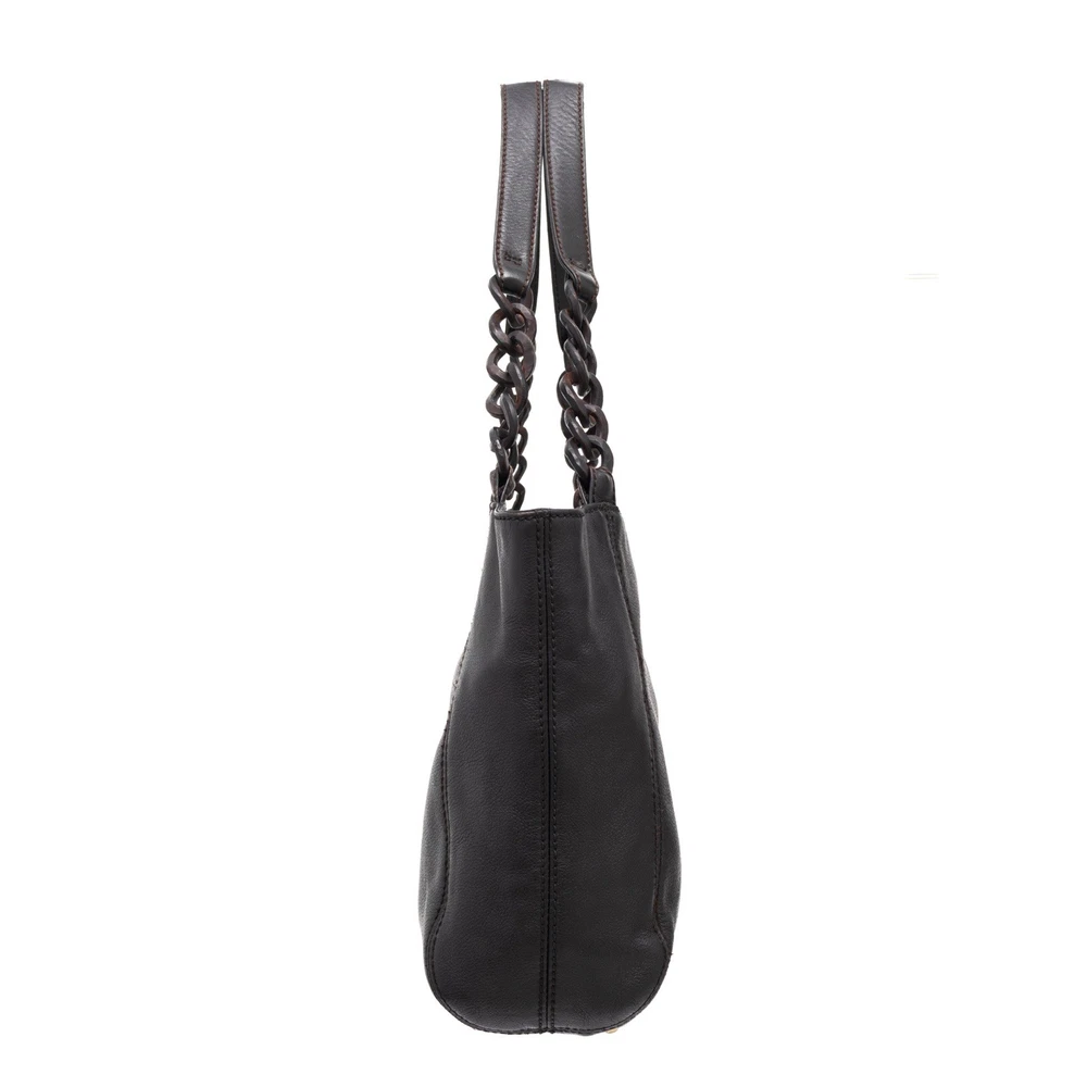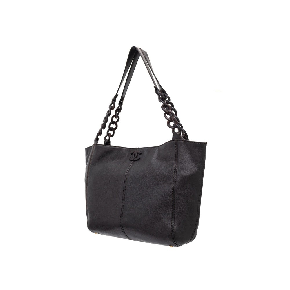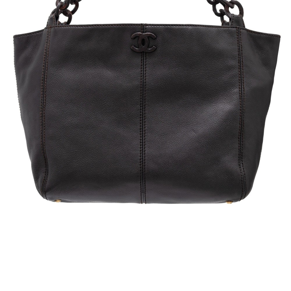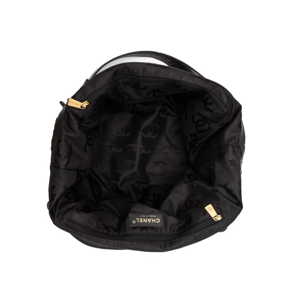 5.4k$ Chanel Black Caviar Leather & Wooden Chain CC Logo Handle Tote Bag - Size : OS - Shoulder Strap Drop: 10" - Height: 10" - Width: 17" - Depth: 4.5" - 7.9/10 Good Condition With Slight Signs of Usage !!! re-stitched handle mounts!!!! - 100% Authentic - 100% Leather - Wooden Chain - Wooden Chanel CC Interlocking Logo - Satin Lining - ART : 8681100 - From the 2003-2004. Collection by Karl Lagerfeld - RRP 5400$ - Vintage - Great for investment - Branded Hardware - Lampo Zipper - Dual Interior Zip Pockets - Magnet Closure