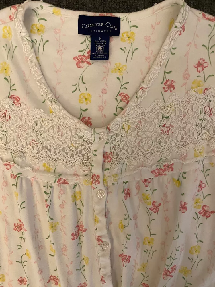 VTG Charter Club Floral Lace Housecoat Robe Women Med Cotton Prairie Cottagecore Good pre-owned condition. Free of rips, tears or holes. Additional signs of normal wear may be present. Please see all photos. Size: Med - 100% cotton - machine washable (Measurements in photos) Ships FAST & AFFORDABLE - next business day. - All Offers welcome -