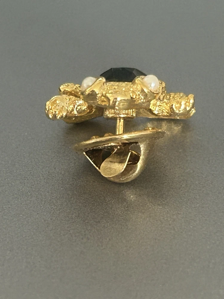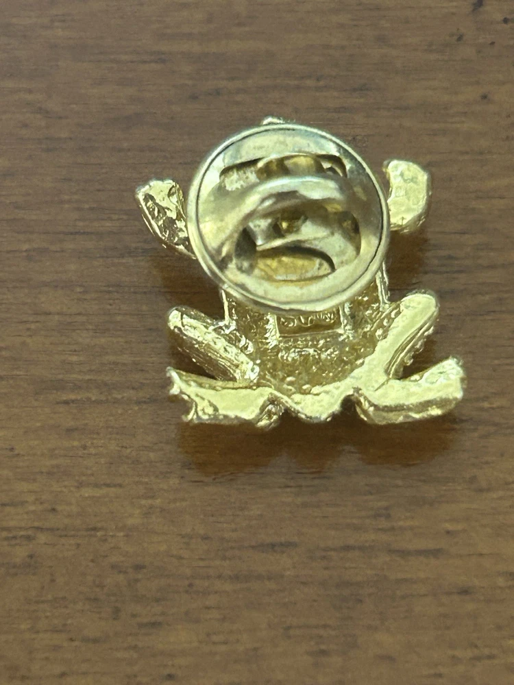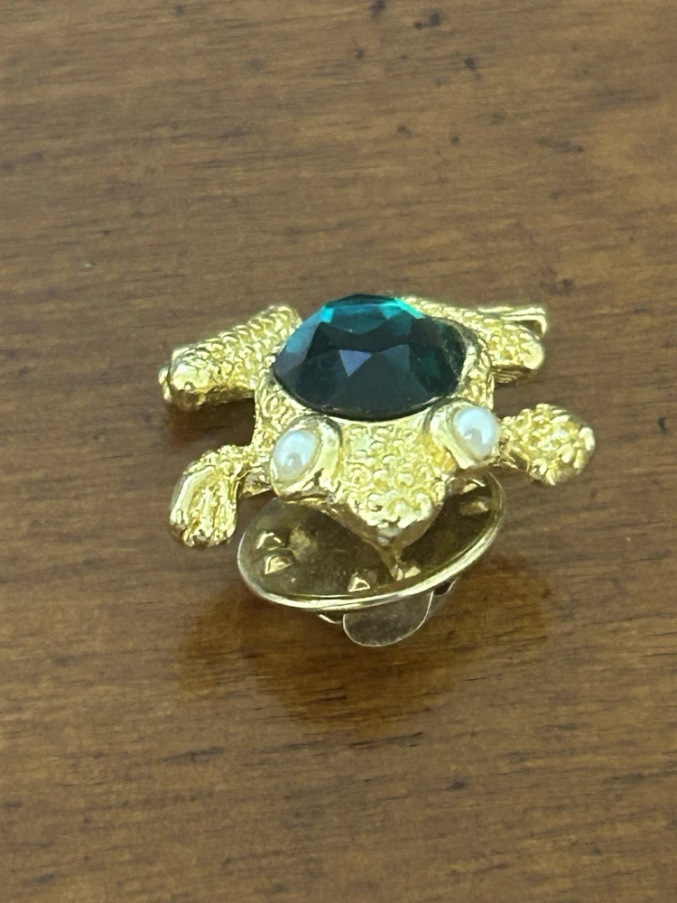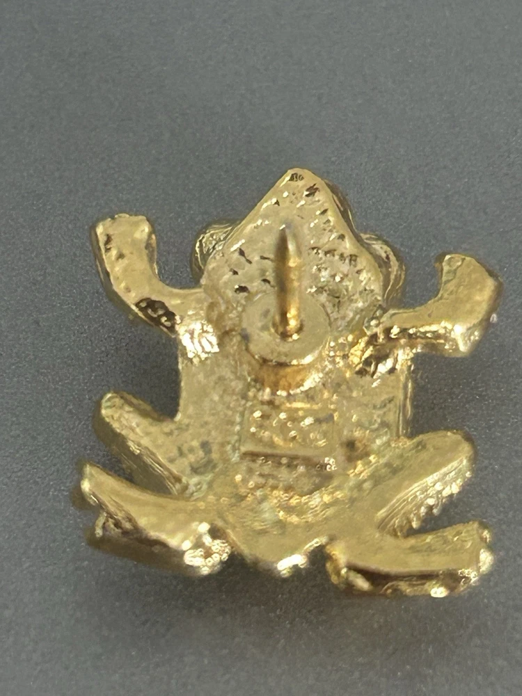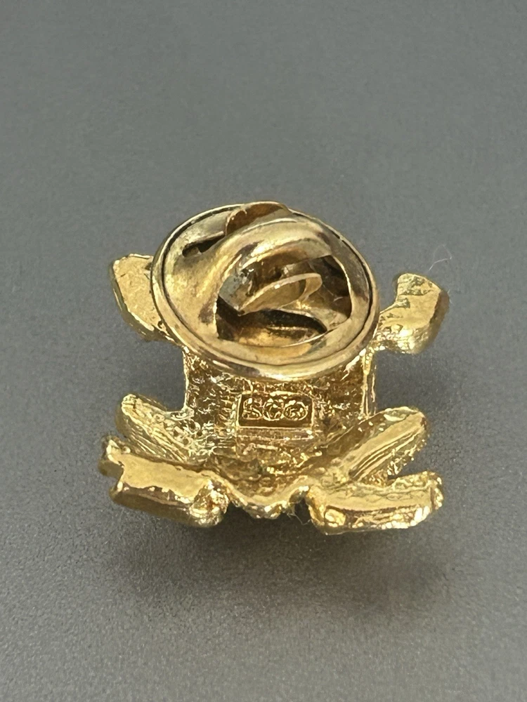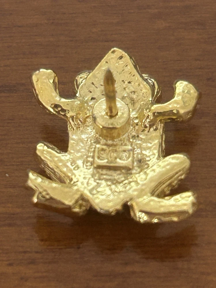 Vintage Frog with Green Oval Stone Faux Pearl Eyes Pin Brooch Goldtone Stamped SCO Good vintage condition- refer to pics