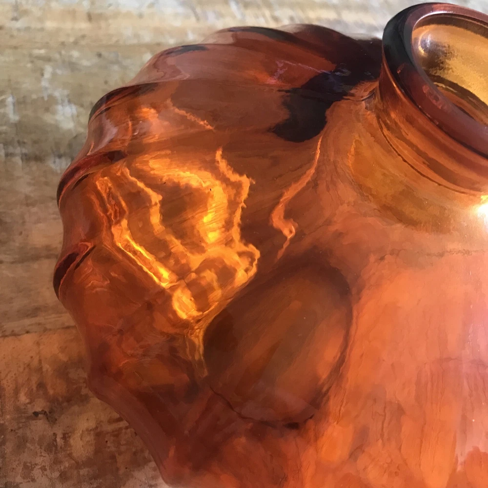 This Halloween-themed art vase is perfect for any pumpkin lover. Its unique shape and vibrant orange color make it a standout piece for any home décor. Measuring 6 inches in height, this glass vase is ideal for displaying flowers or as a decorative piece on its own. The 20-panel design adds an extra touch of elegance to this rustic pumpkin balloon. Whether you're looking for a statement piece for your home or a thoughtful gift for a loved one, this vase is sure to impress.