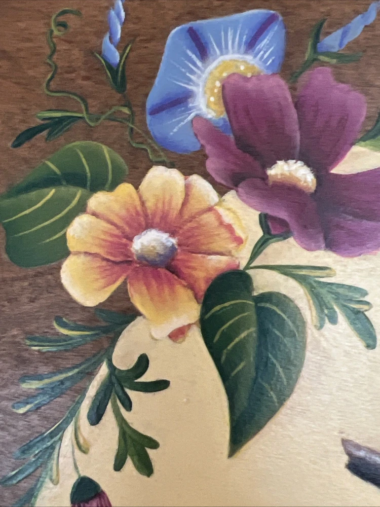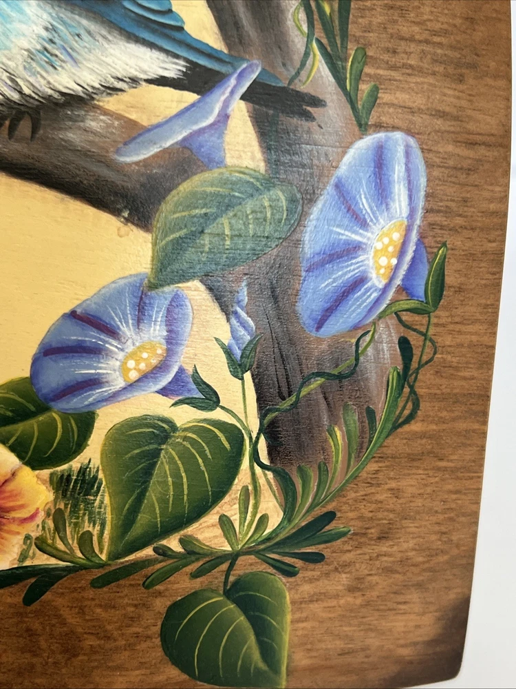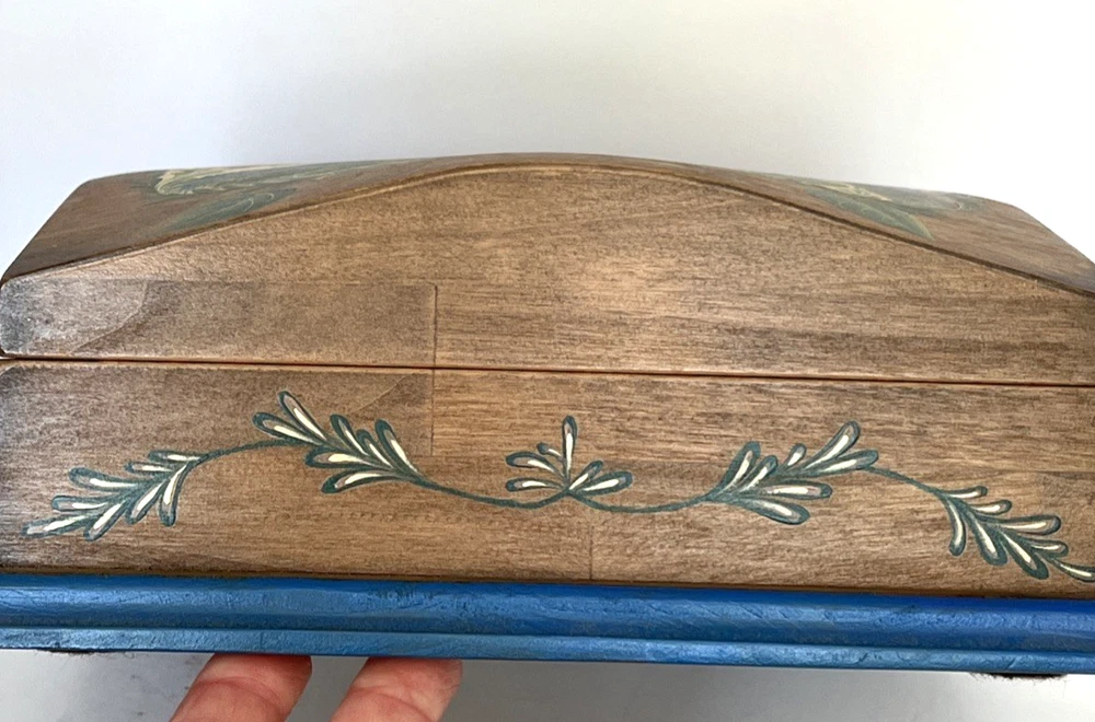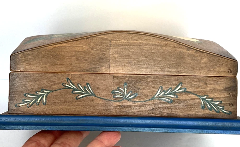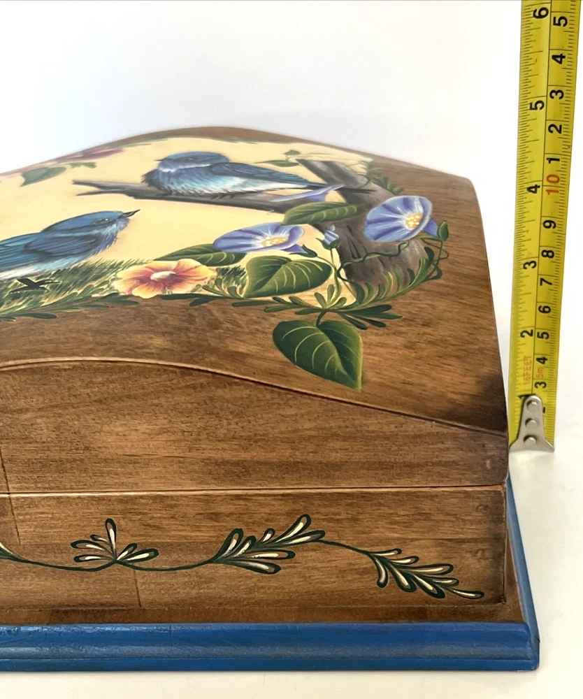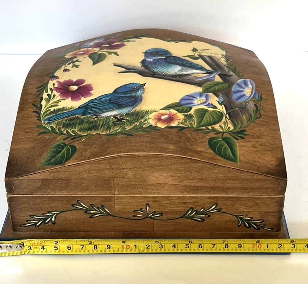 VTG Hand Made Wooden Box Signed & Painted Colorful Bird Floral Hinged Box 9X9 " I will pack with care and get it to you ASAP Thanks for looking !