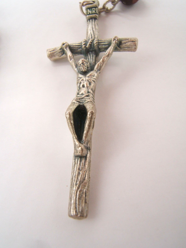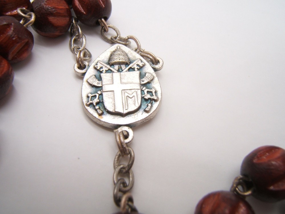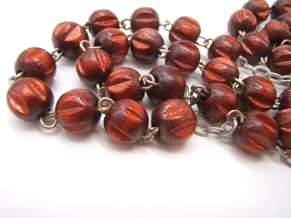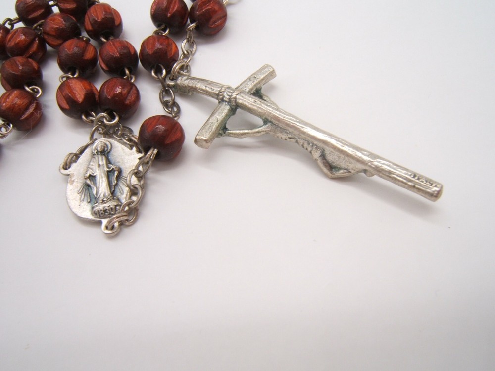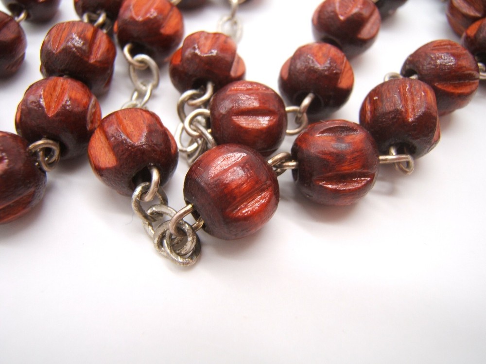 $ 9.77New St Benedict Bronze Medal Brown Carved Wood Rear View Auto Rosary Beads #b