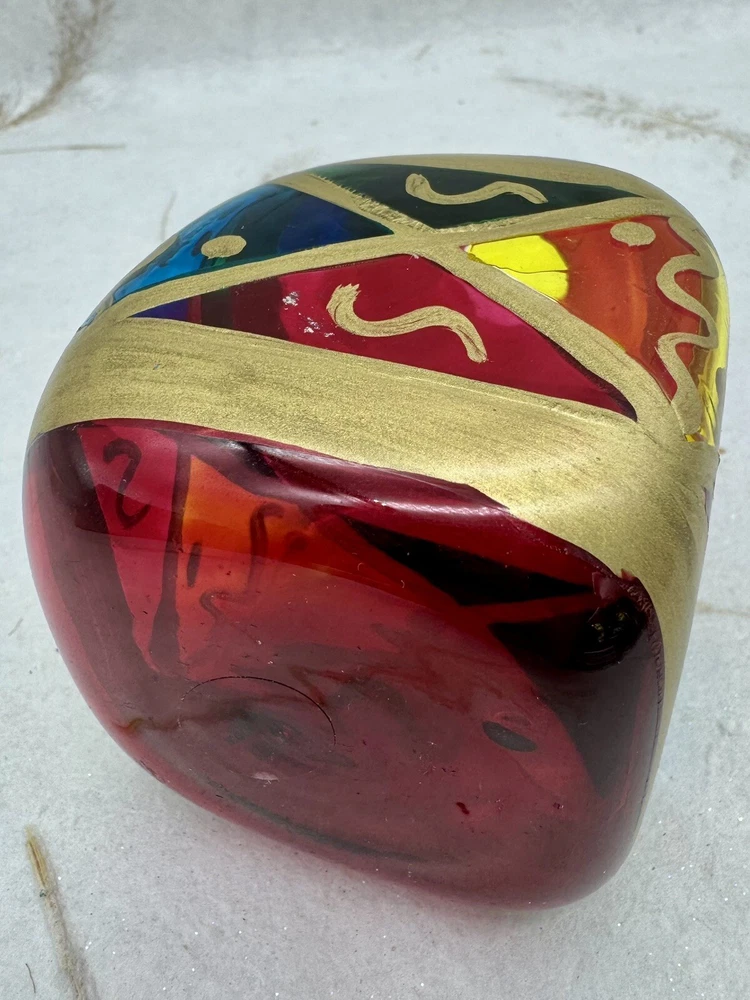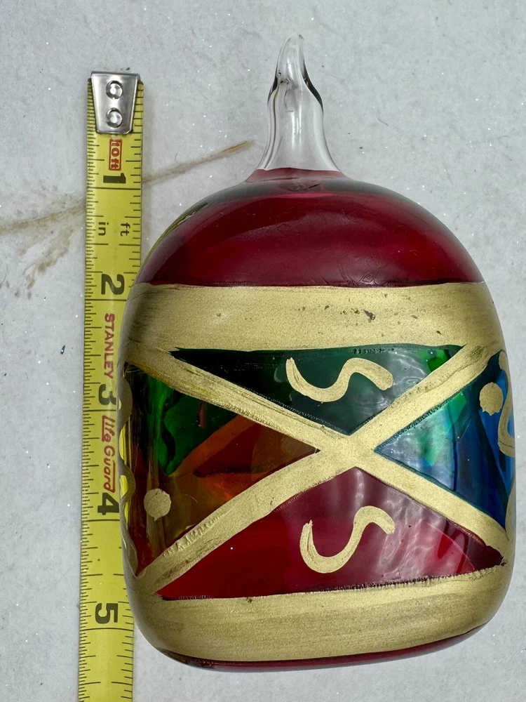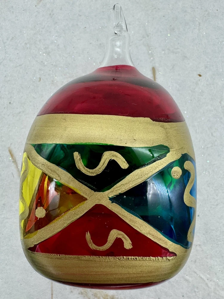 π Add a touch of vintage charm to your holiday decor with this handcrafted Italian glass Christmas ornament. π Featuring a unique stained glass style and hand-painted design, this medium-sized ornament measures 4.5" in height and 2.5" in width. π The diamond pattern and square shape make it a perfect addition to your Christmas collection. π Made from high-quality glass and produced using hand-blown techniques, this original vintage ornament is a true work of art. π The red and multicolored color and art nouveau style give it a holiday theme that will complement any Christmas tree. π This ornament is a must-have for collectors and those who appreciate handcrafted beauty. π Nice preowned vintage condition. No cracks or chips. π Please view photos for closer inspection and more details. Thanks for shopping π