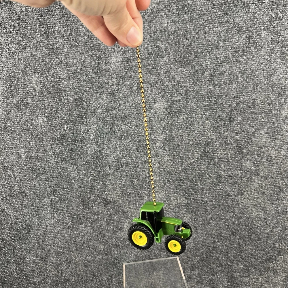 Preowned , Vintage Green Tractor (Supposed to be John Deere but there are no official marking on it that I can see/find) Ceiling Fan Or Light Pull. The tractor is lightweight and measures 2.25” long x 1.75” tall. The chain is 6.5” long. Will be shipped to you in a plastic bag (for protection from the potential elements) inside of a poly bag as that’s the cheapest way to get it to you. Please refer to the pictures for further.