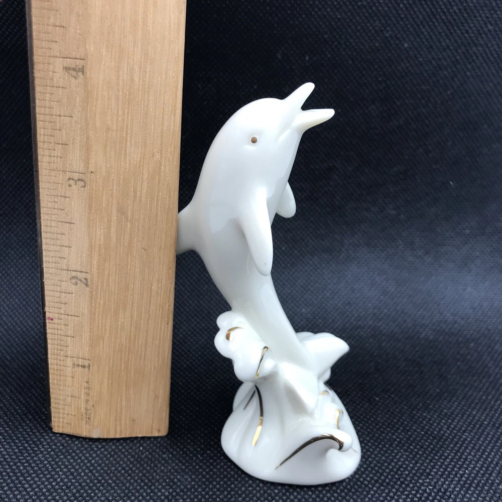 Lenox White & Gold Dolphin Porpoise Figurine Fine China 24k Gold Accents Dolphin figurine Lenox fine porcelain sculpture statue vintage gold porpoise sea Thanks for looking.. Please review photos closely. Message me for any questions you have.