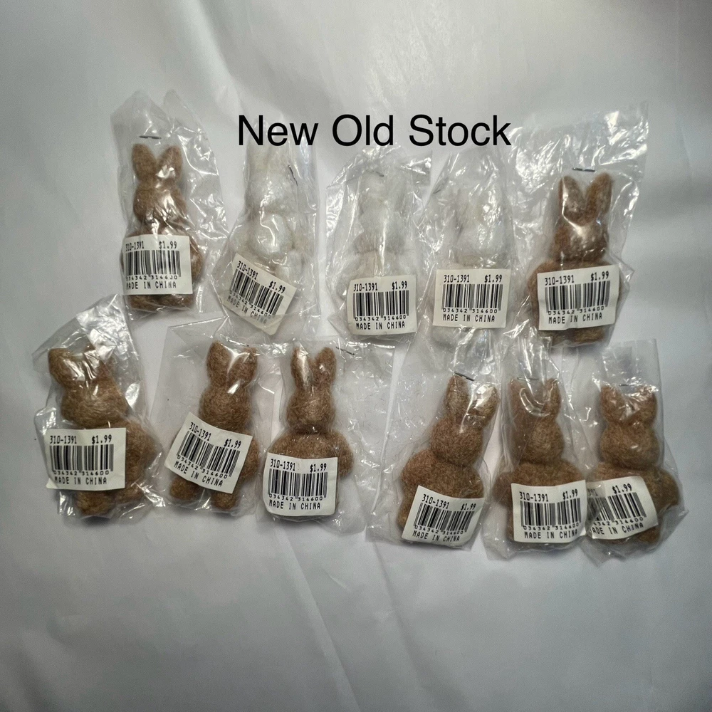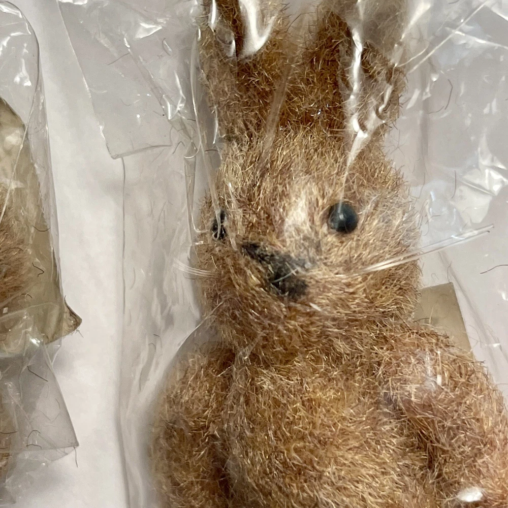 VTG NOS Lot of 11 Flocked Easter Bunny Rabbit Figures Articulated Collectible Add these adorable flocked bunnies to your collection of Easter-themed figurines. These small brown and white rabbits stands at 2.75 inches tall and have movable parts. Please handle with care since they are vintage and fragile with age. The flocked material gives them a cute and soft appearance, making them a perfect addition to any collection of fantasy or wildlife-themed figurines. Or, make them part of your decorative displays or cute Easter gift surprises. These bunny rabbits are collectible and perfect for Easter, art, crafts, fairy tale themed projects, or for wildlife enthusiasts. Its small size makes it easy to display on any shelf or desk. Get your hands on this vintage new old stock lot of 11 articulated bunny figures before they disappear! They come in their original packaging. The one sample shown out of package is one I kept.