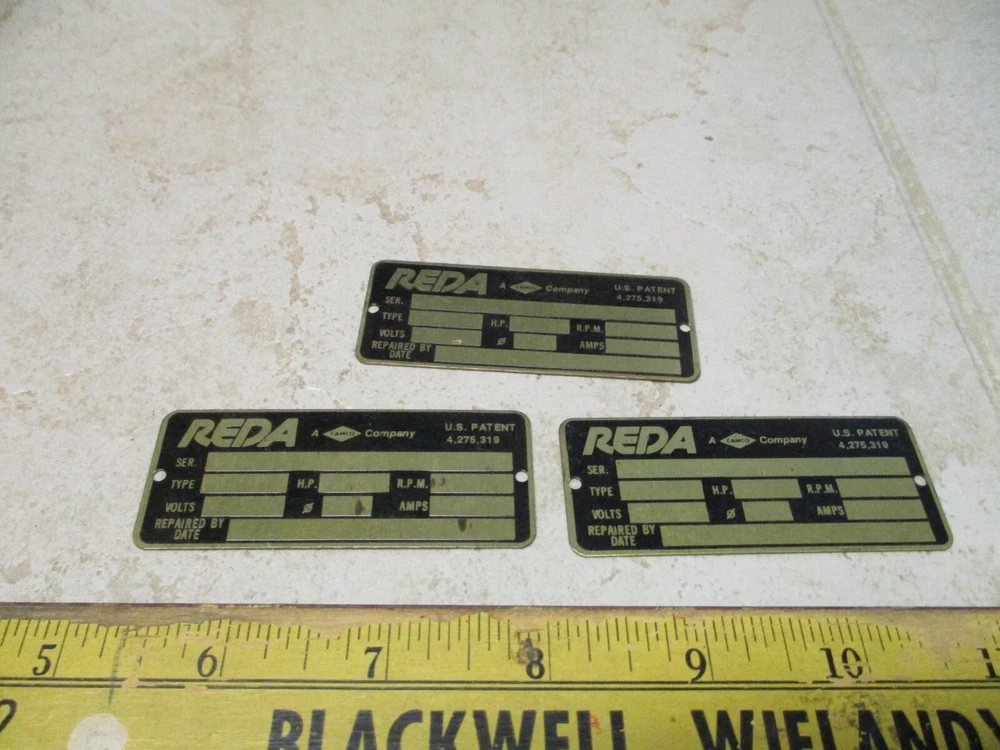 This is a lot of 3 new brass name tag/ID plates for motors. These are not filled out.