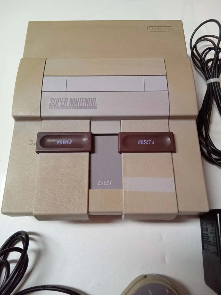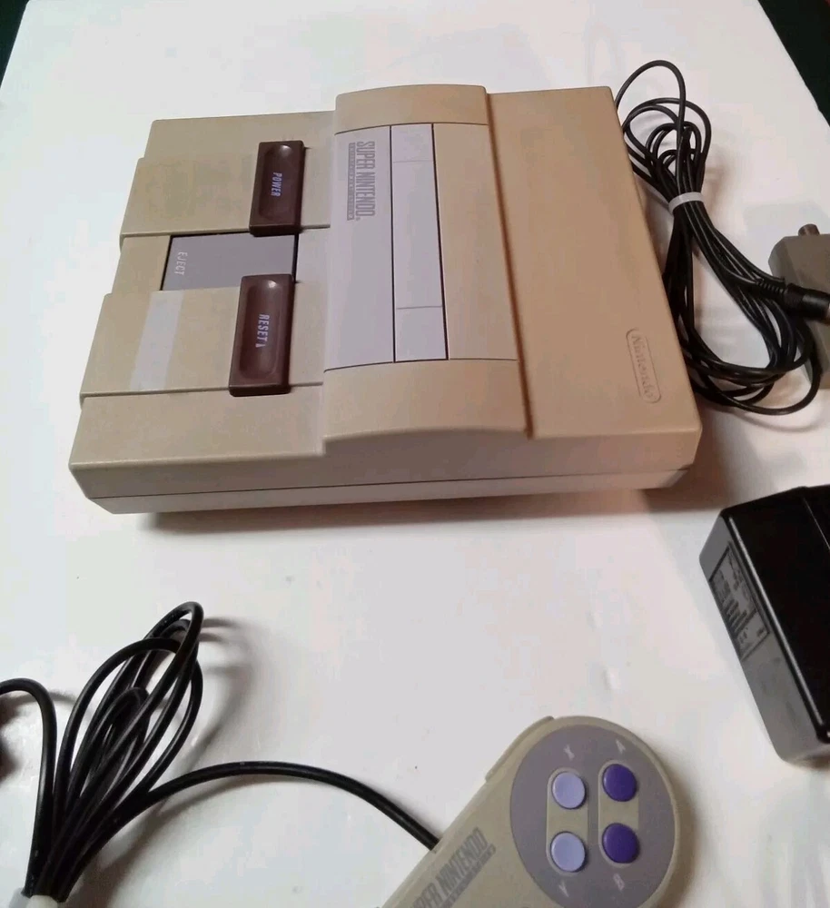 Dive into the nostalgia of classic gaming with the vintage Nintendo SNS-001 SNES Home Console. This timeless piece of gaming history brings the iconic Super Nintendo experience right to your living room. With its classic gray color and authentic Nintendo design, it's a perfect addition to any collector's or gamer's collection. The console comes with one controller, ensuring you can start playing right away. It's manufactured in Japan and features Composite RCA connectivity options for easy setup with your TV. Rediscover the joy of 16-bit gaming with this fully tested and working Nintendo SNES console, 1 controller and cords. The system is in used condition. See photos.