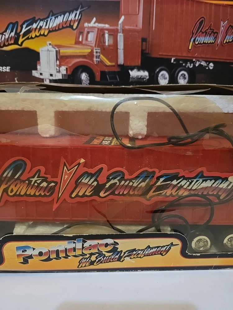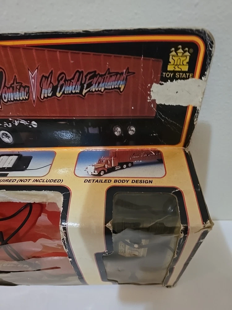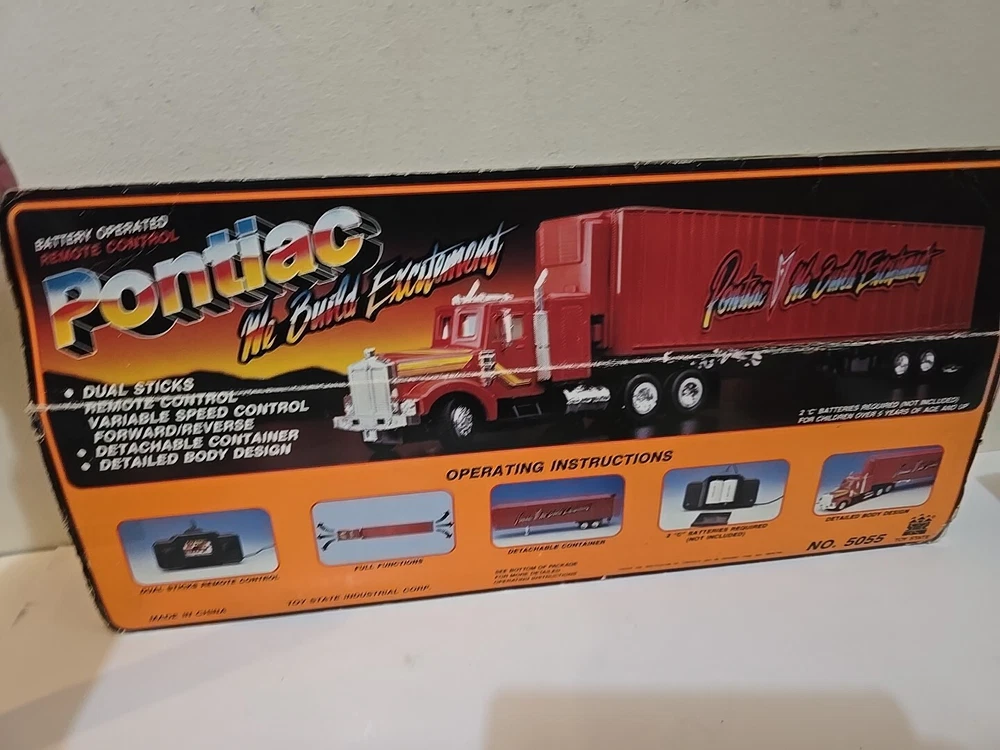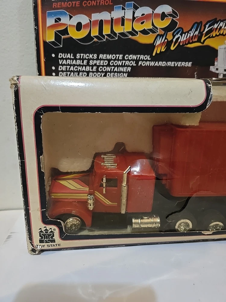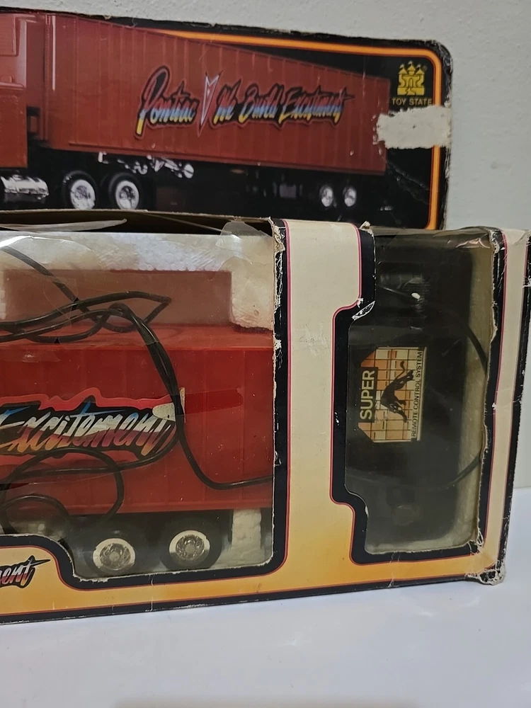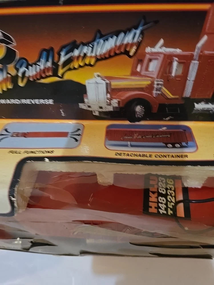 Very rare 1989 remote control semi w original box.Box has some wear from age, cellophane has a tear. Semi looks like great shape. I Can't say it's new in box and I'm not going to be the one to remove from box for testing as it was just a second hand find on my treasure hunts. I am not a collector of automotive stuff. I just buy rare stuff when I find it. Leaving that job to someone who does appreciate these and know more than i do.