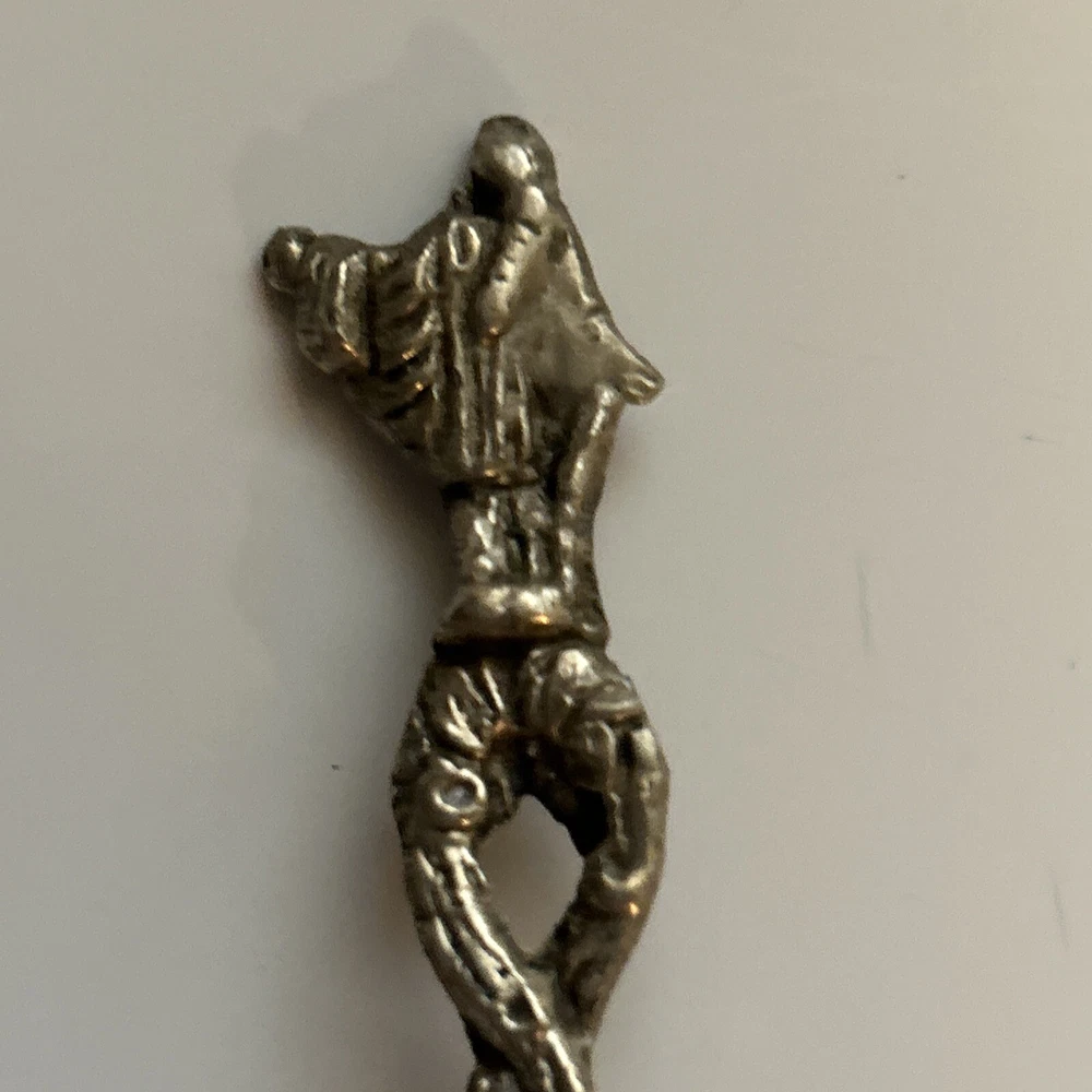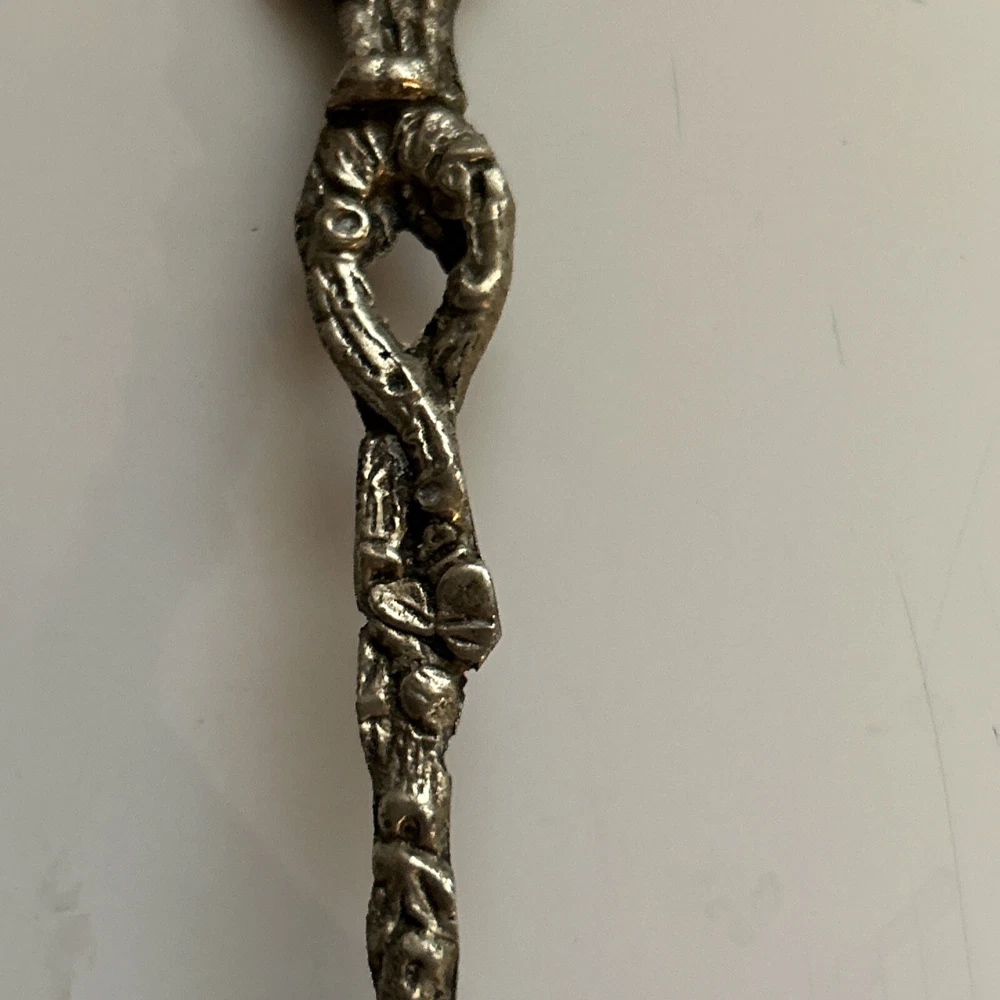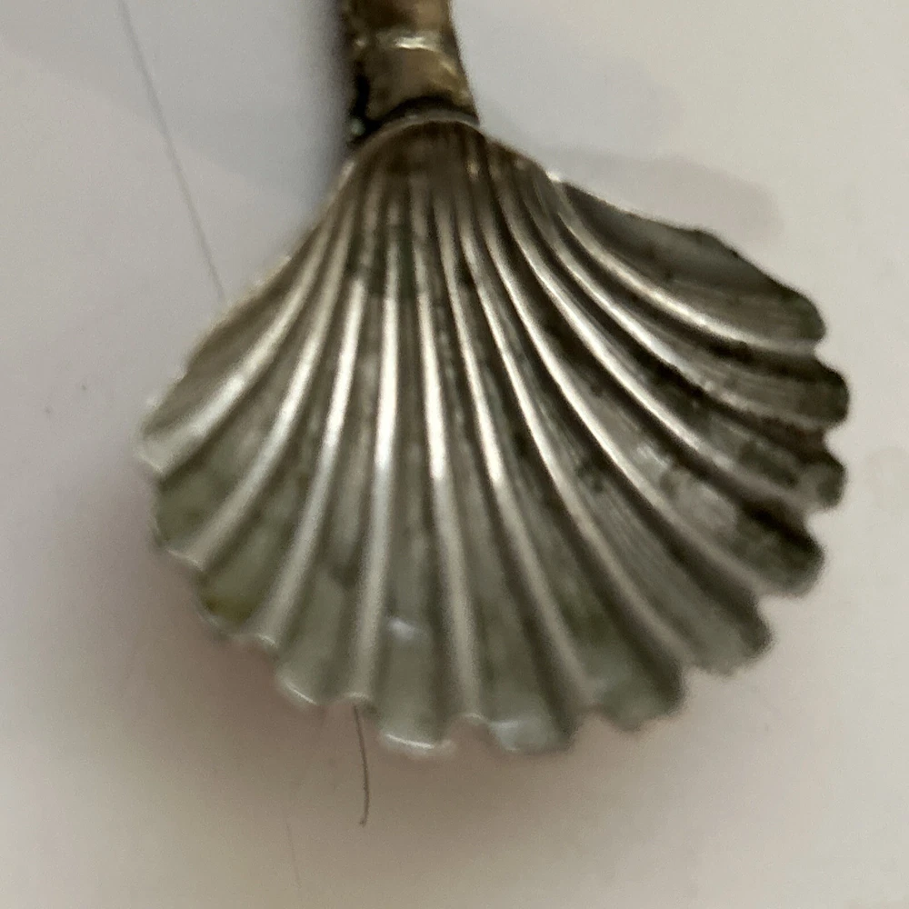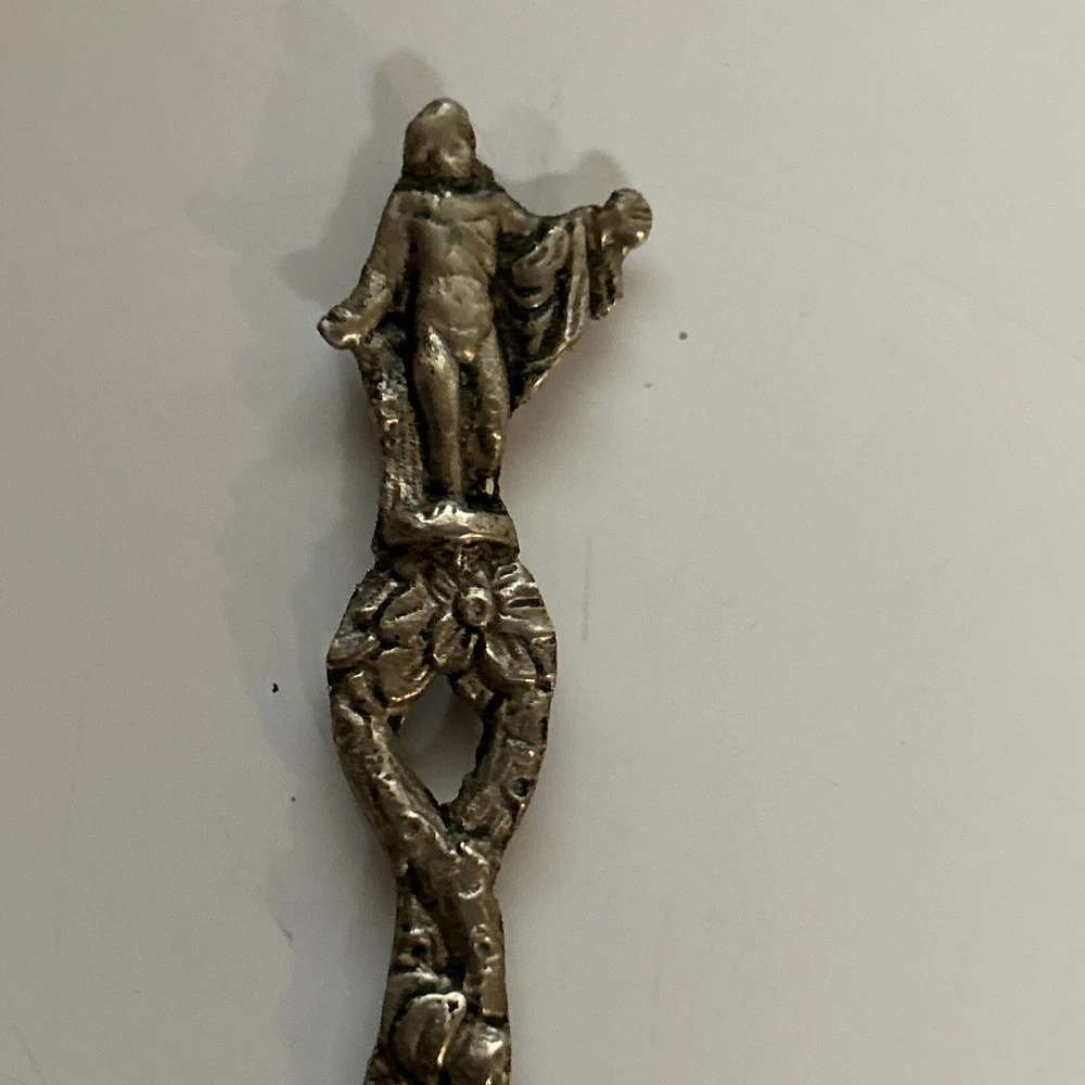 Vintage Scalloped Sugar Spoon Silver Plate Decorative Roman Figure Motif Italy. Has some patina from age (photos) Great condition 4”