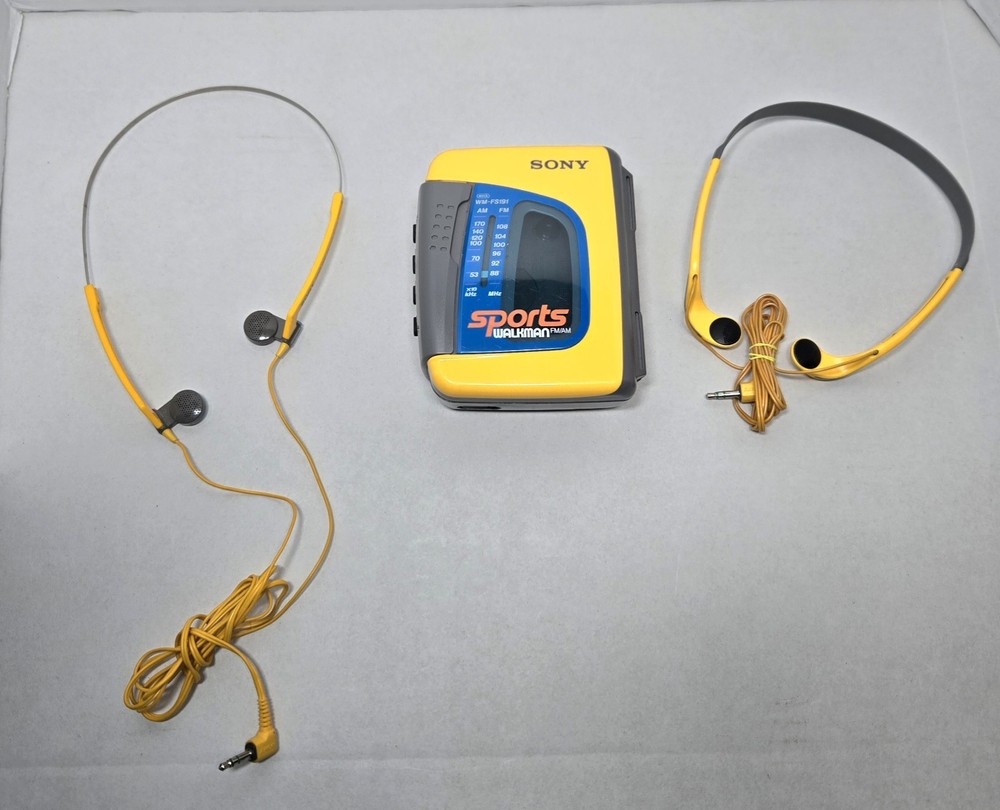 The product is a VTG Sony Sports Walkman AM/FM Radio Cassette Player WM-FS191 in yellow color. It features wireless connectivity with a headphone jack, making it easy to listen to music on-the-go. This model is part of the Walkman product line and was manufactured in Taiwan. The Sony brand ensures quality and reliability in portable audio devices, making this Walkman a great choice for those who appreciate retro technology and personal cassette players. ****COMES WITH 2 HEADPHONES, SEE PICTURES FOR DETAILS, WORKS GOOD! TESTED!!!*******