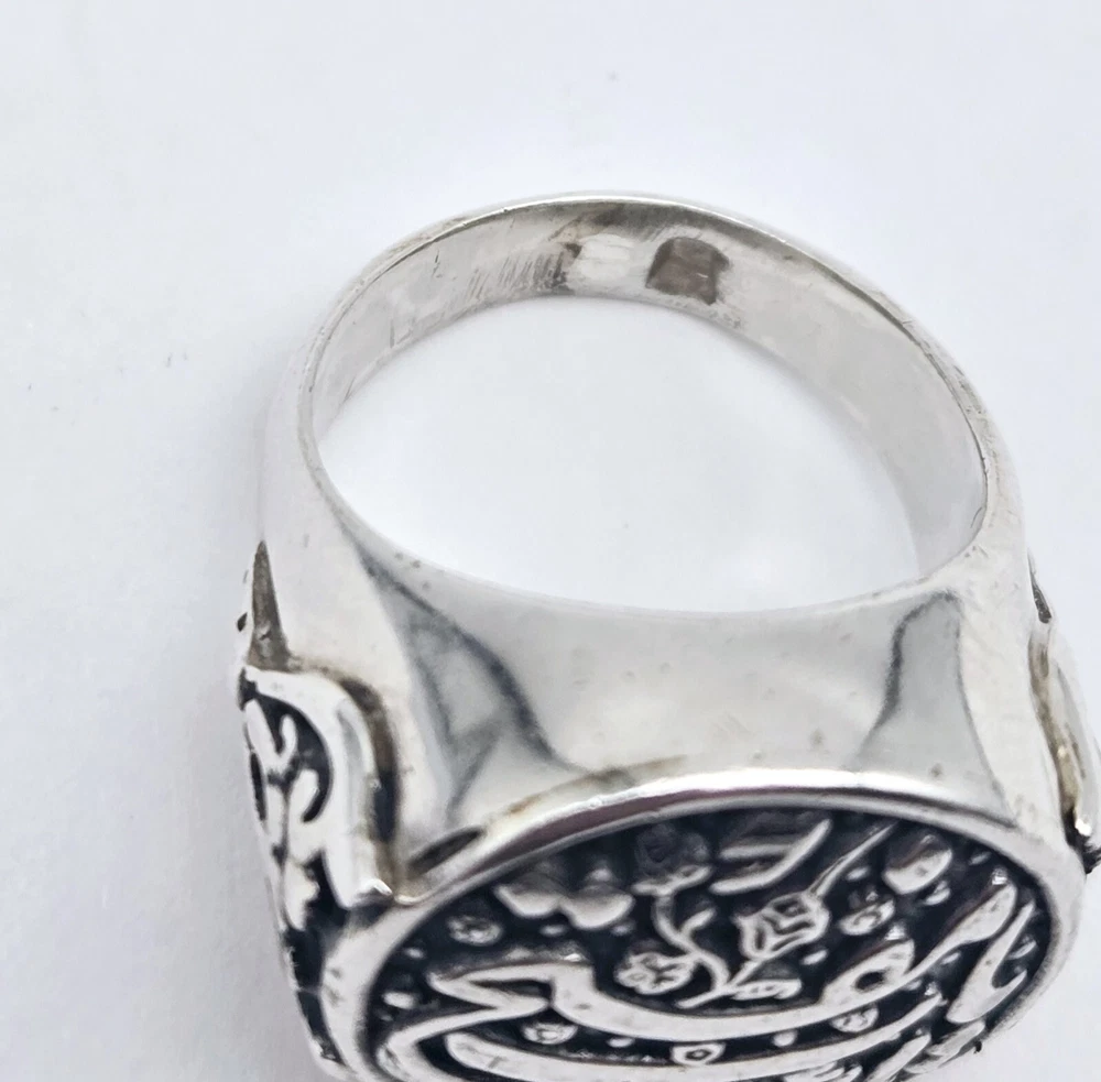 VTG Sterling Silver Signet Arabic Calligraphy Script Islam Ring - Size 5 - 7.8g