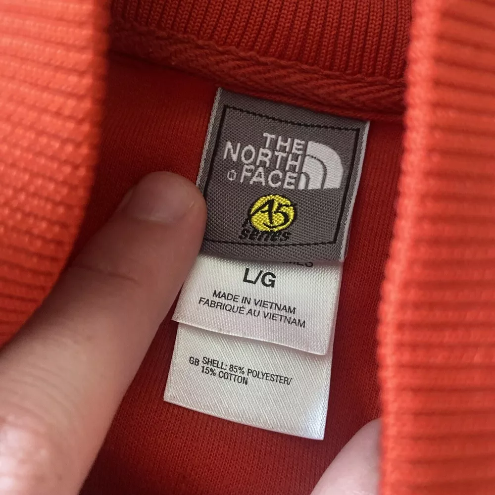 Pattern:SolidProduct Line:The North Face Summit SeriesFabric Type:MicrofiberClosure:ZipStyle:Varsity JacketTheme:90s, OutdoorColor:RedType:JacketVintage:YesLining Material:PolyesterSize Type:RegularDepartment:MenModel:The North Face A5gtin13:Does not applyInsulation Material:PolyesterUPC:Does not applyBrand:The North FaceOuter Shell Material:PolyesterFeatures:Pockets, Full ZipSize:L