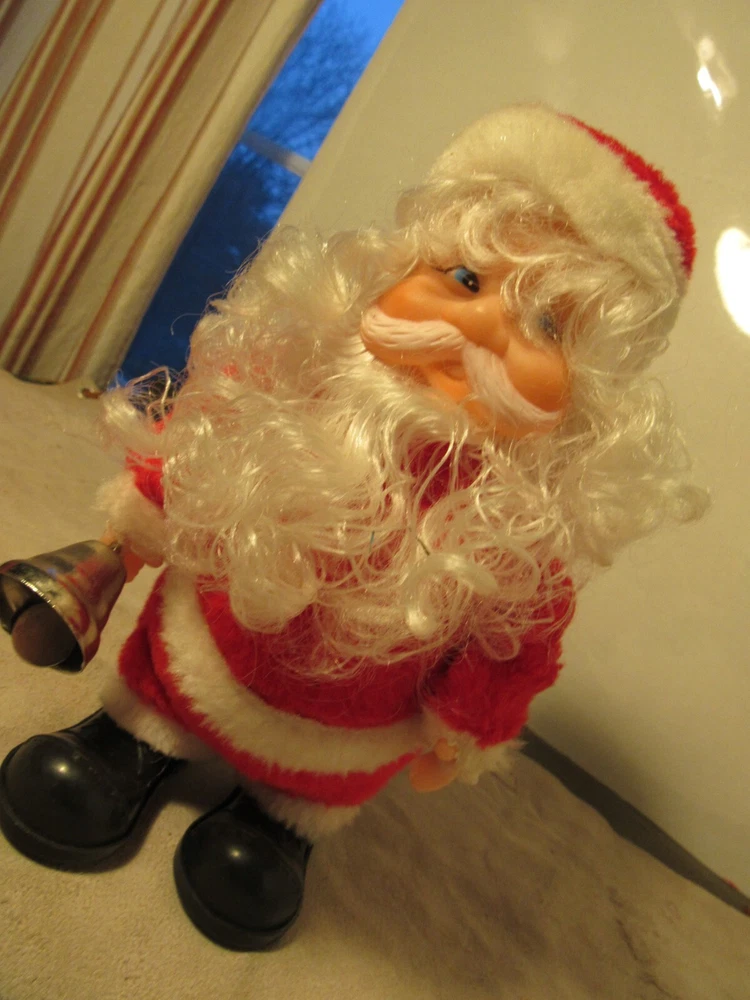VTG Walking Ringing Bell Musical Christmas Santa Claus, Works