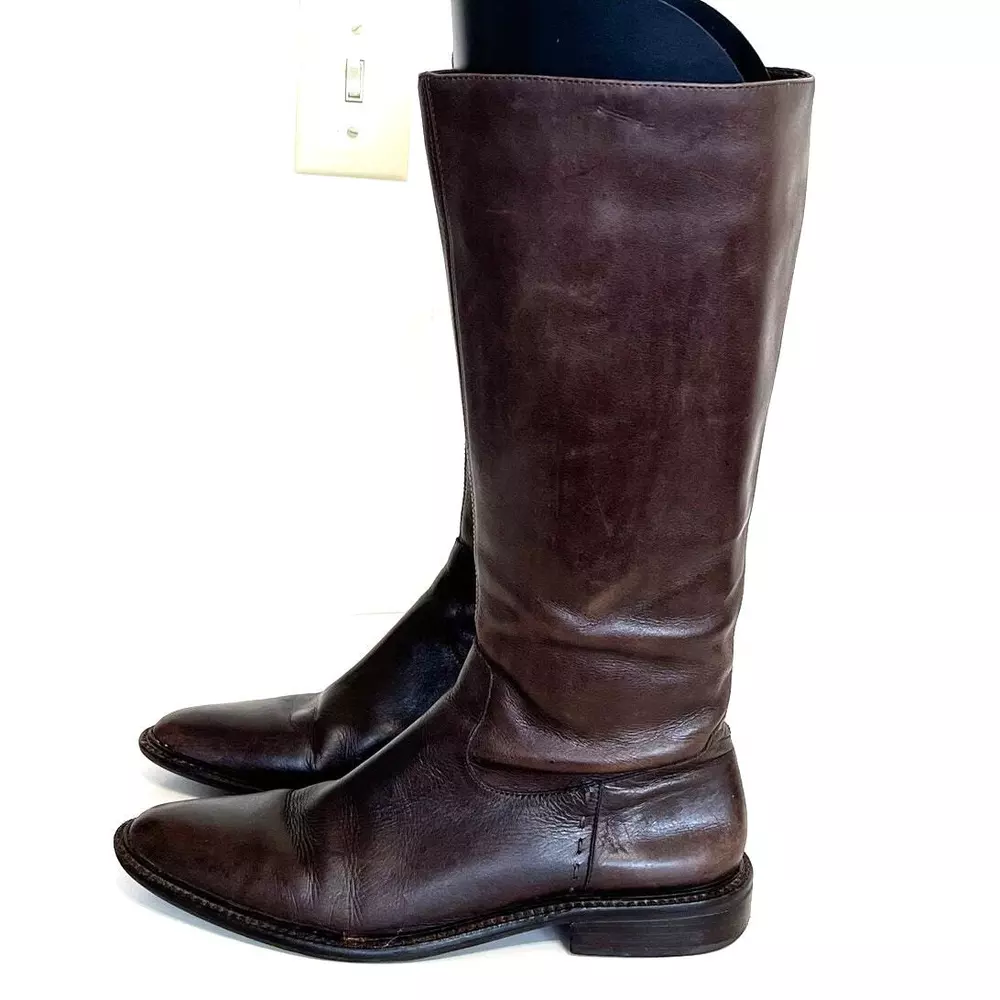 Espresso Chocolate Brown Expedition Vintage 90s Y2K Leather Eddie Bauer Safari Riding Equestrian High Definition Western Rodeo Cowgirl Boots Butter soft leather Pointed Toe Zip closure Made in Brazil Sz 8M Heel 1 Shaft 13 Circumference 15 Good condition with some wear to soles pls see all pics