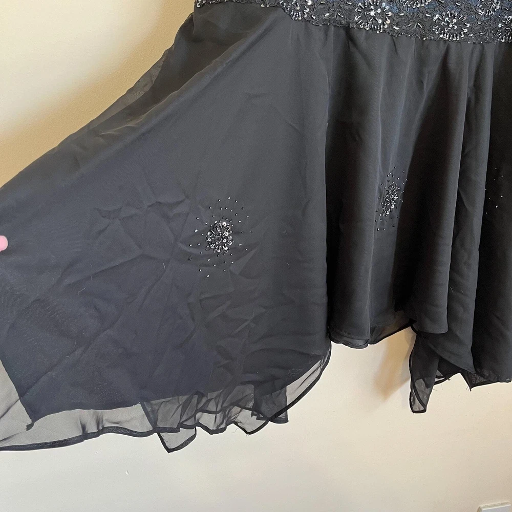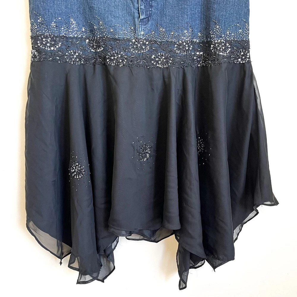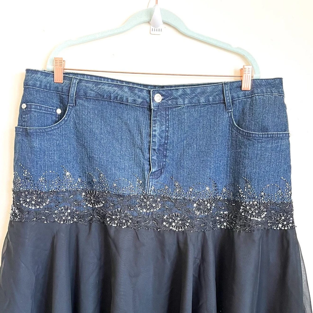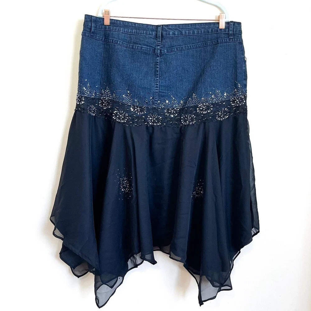 New Tinkerbell Goblincore Beaded Sequin Chiffon Witchy Steam Punk Goth Prairie Boho Vintage Ashley Stewart Fairycore Skirt Zip button front closure Pockets Lined 55% Ramie 25% cotton 2% spandex Machine wash China Sz 22W waist 41 length 34 longest 28 shortest New With Tags