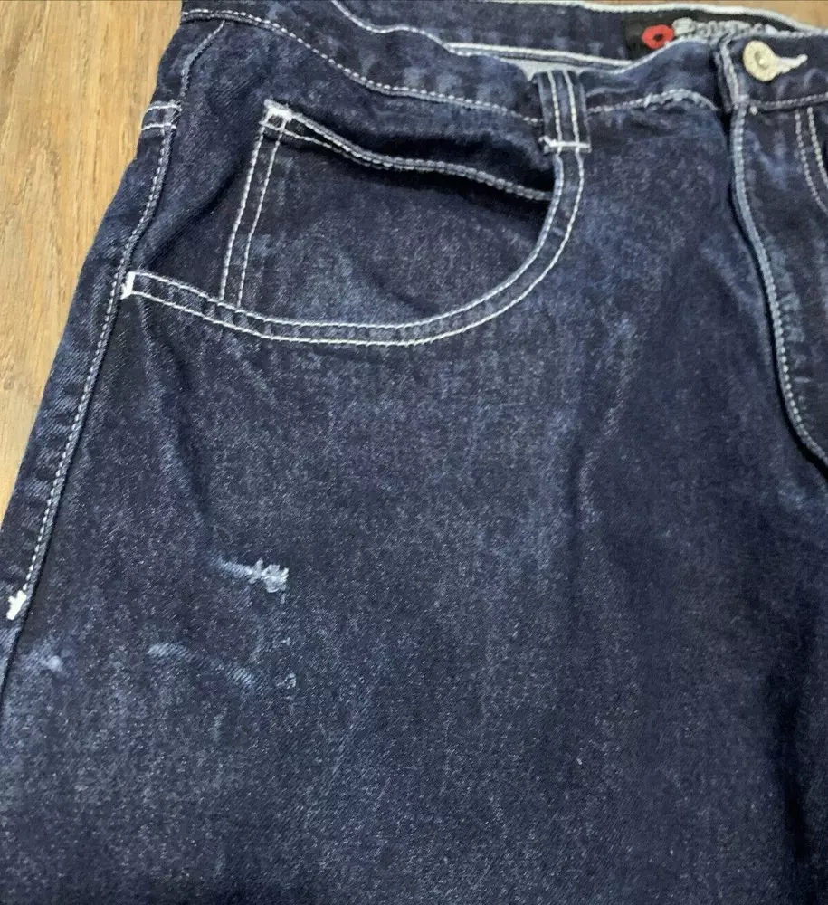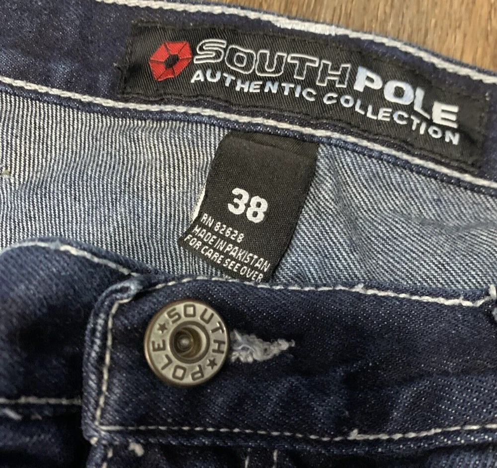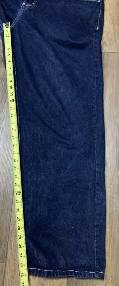 Elevate your streetwear game with these vintage Southpole jeans. The high-rise, wide-leg fit is perfect for any occasion, and the dark wash denim adds a touch of sophistication. The 5-pocket design provides ample storage space for your essentials, while the zip and button closure ensures a secure fit. Made from comfortable cotton denim, these jeans are easy to care for and machine washable. The relaxed fit and solid pattern make them a versatile addition to any wardrobe, while the hip hop theme adds a touch of style. These jeans are perfect for any season, whether you're hitting the skate park or running errands.
