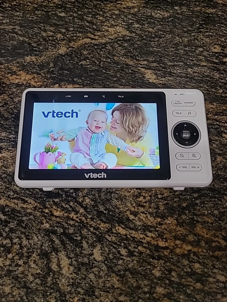 The VTech RM5764HD is a 5" digital video baby monitor with remote access capabilities. It operates on a 2.4GHz frequency and features infrared vision, a temperature monitor, two-way audio, volume control, and smartphone compatibility. The monitor also includes features such as lullaby playback, battery warning alerts, a camera, and an out-of-range indicator. Additionally, it is compatible with Amazon Alexa and Google Home for smart home integration. This portable monitor provides a convenient way to keep an eye on your baby with its digital display and array of useful features. Excellent pre-owned condition. Stored in AC pet smoke free facility. Thanks for shopping by. Packed and ready to ship.