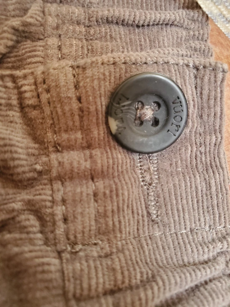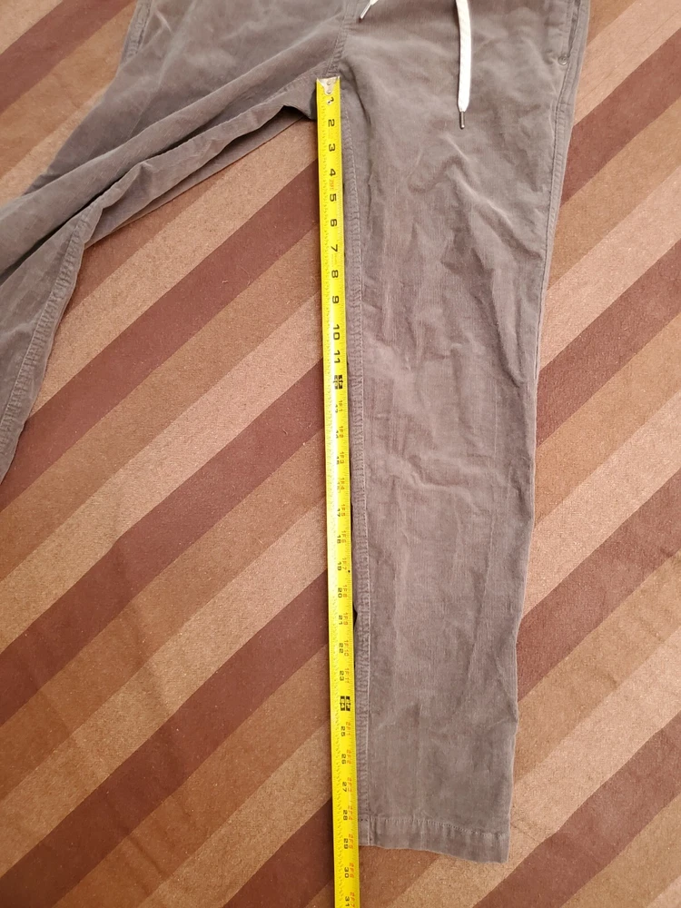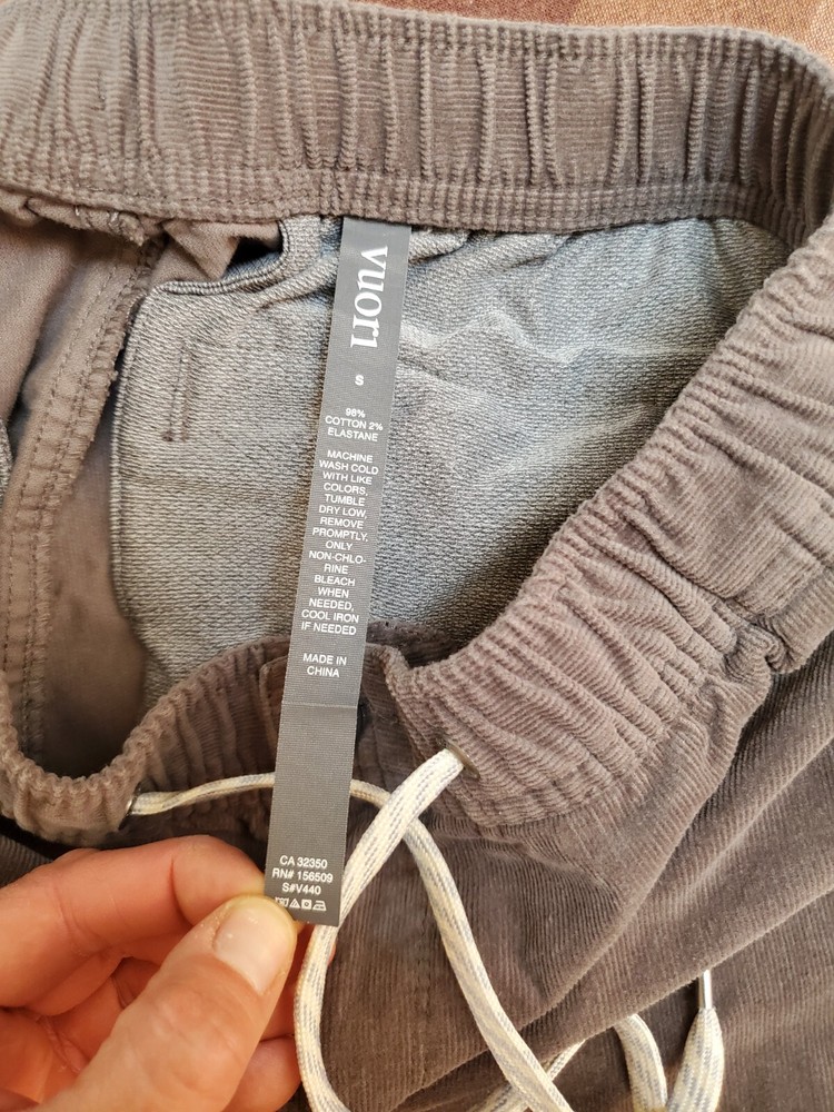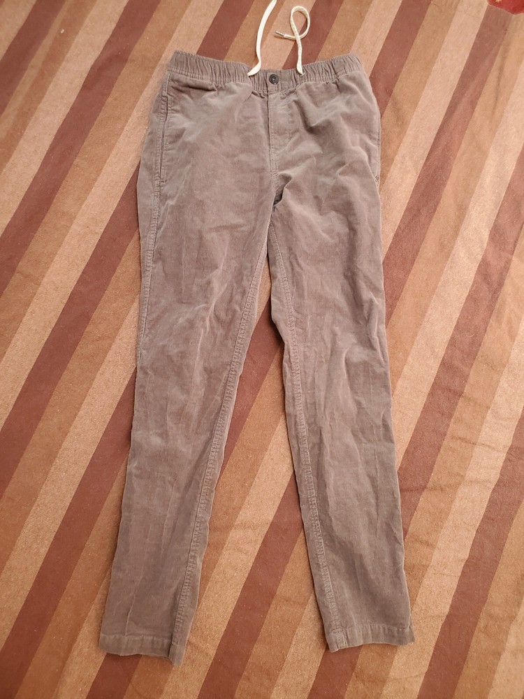 VUORI SZ S MENS CORDUROY OPTIMIST PANTS ELASTIC WAIST GRAY BUTTON AND ZIPPER. Condition is Pre-owned - Excellent. Shipped with USPS Ground Advantage.