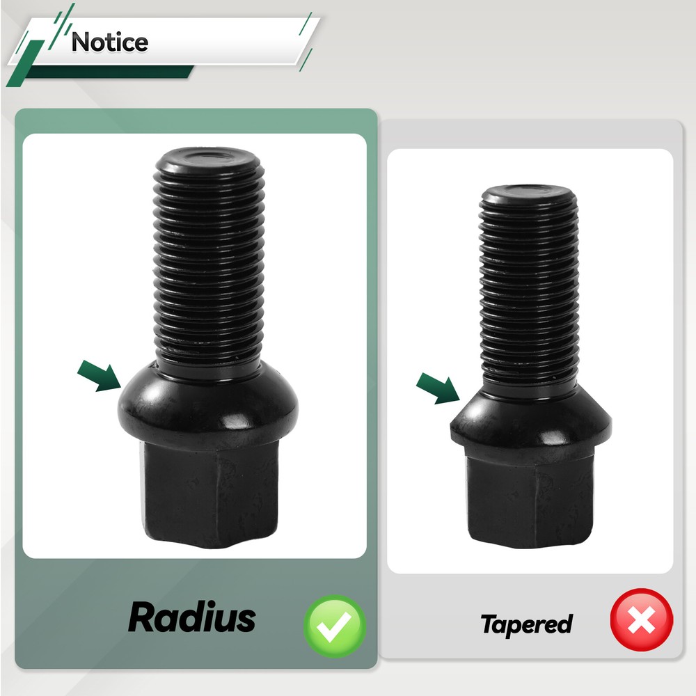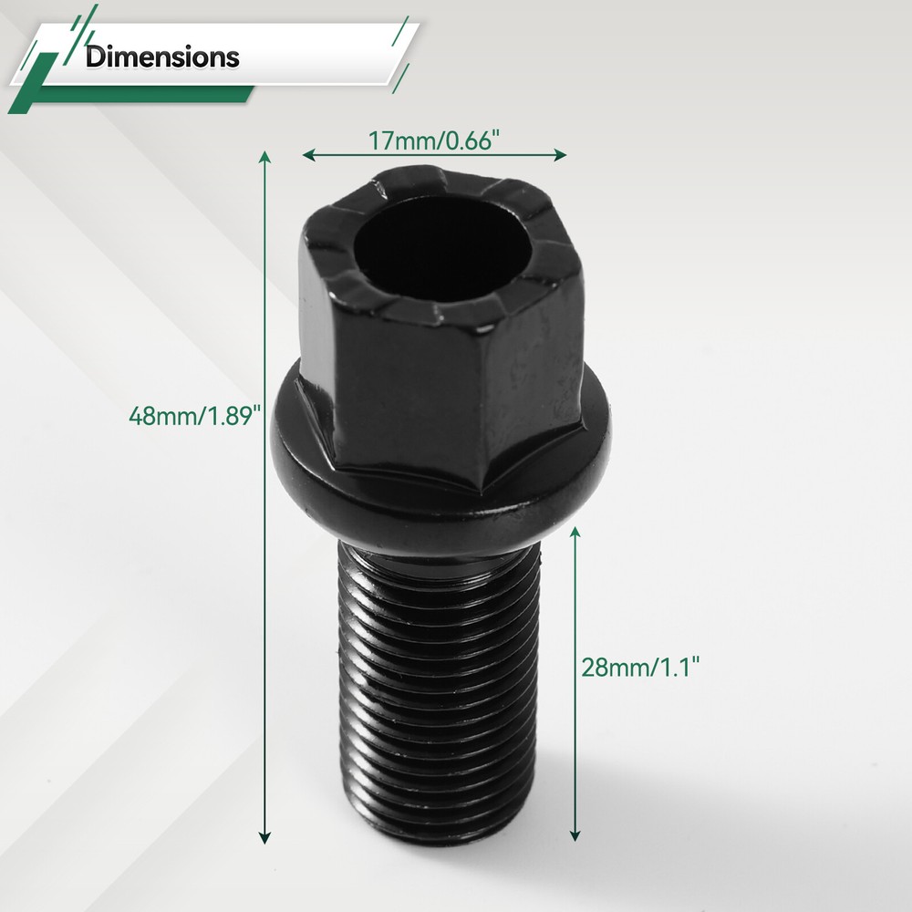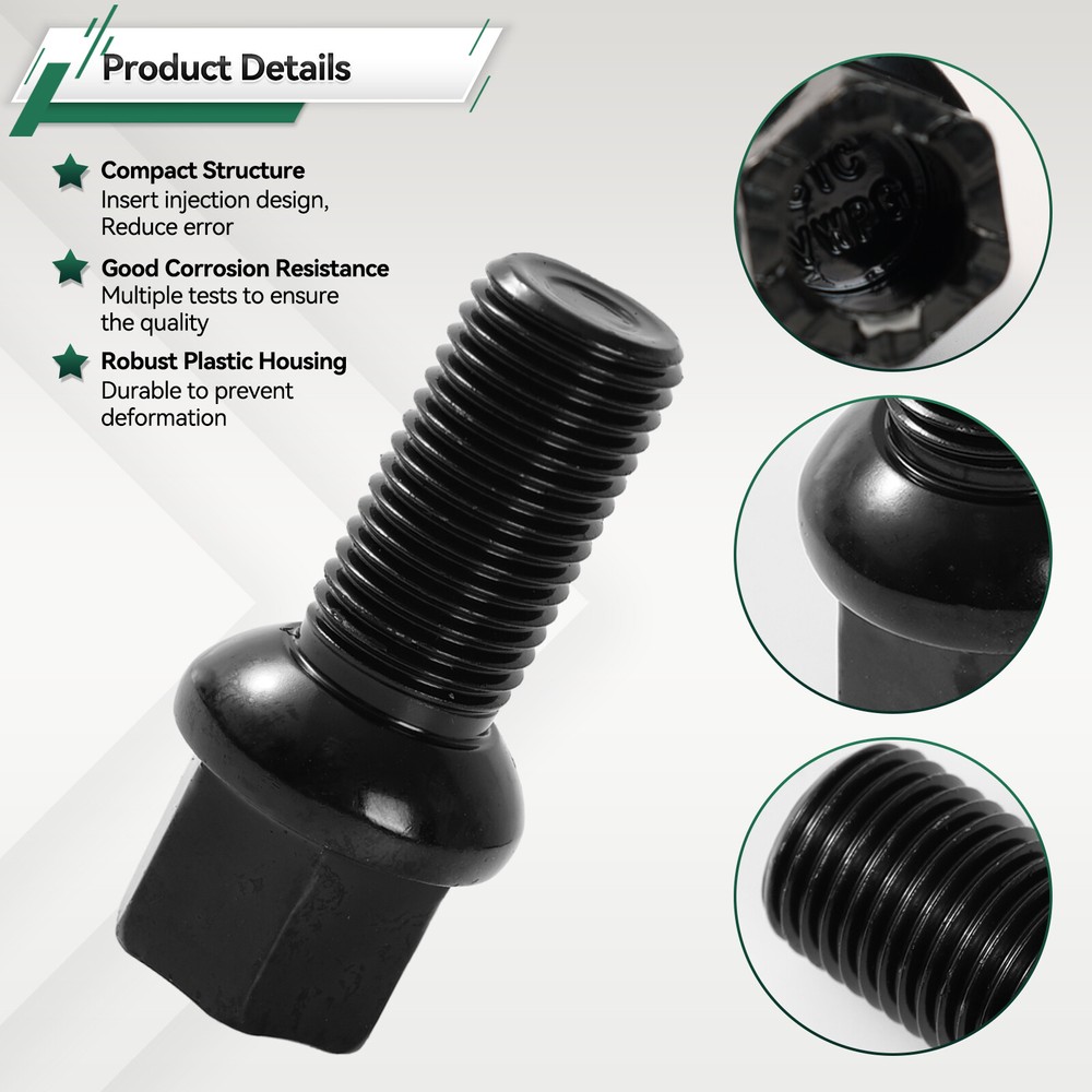 These black wheel bolts are a perfect fit for my VW Golf! The quality feels solid, and installation was quick and easy. They look sleek and match my wheels perfectly. Great value for the price—highly recommend for anyone needing reliable lug nuts.