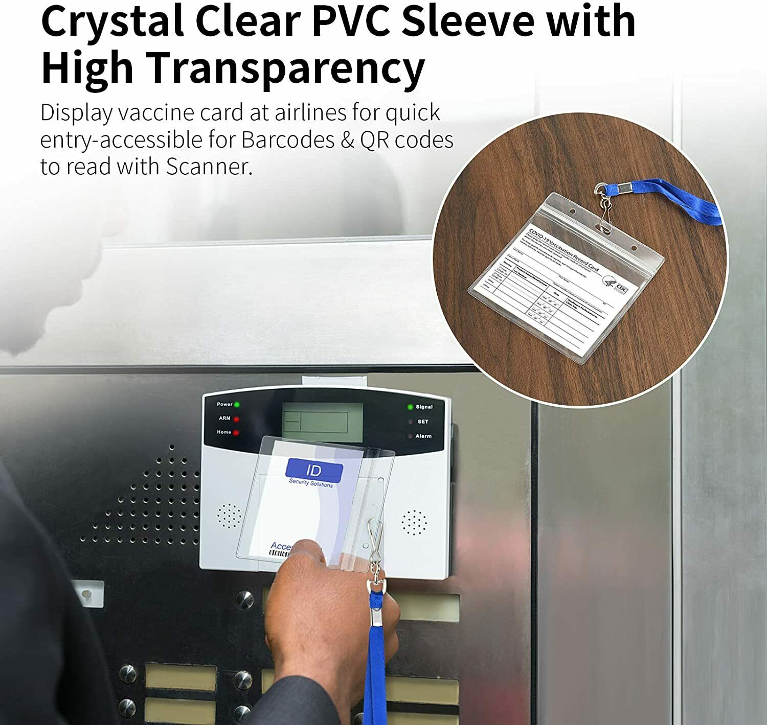 Card Protector 3pcs+3 Clips+3 Lanyards(Packing Listing) Size: 4x3 Card Protector. Outer Dimensions: 3.94" W x 4.53" L, Inner Dimensions: 4L x 3W. Material: PVC material,Waterproof Vaccination Card Holder and Wear-resistant.Resealable zipper keeps contents safe and dry. Occasion: Clear card protector suitable for health record keeper.Multipurpose Great for for doctors, nurses, teachers, students, office employees, government officials, police, volunteers, etc. Design: Dual-use hanging slot/holes design, the middle slot for lanyard, keychain or retractable carabiner reel clip, the both side holes for the cord/strap/string/thread. Strong and Flexible plastic material. The badge holders will not leave trace, folded and refolded many time. The hanging Slot/holes will not break, distorted many time.