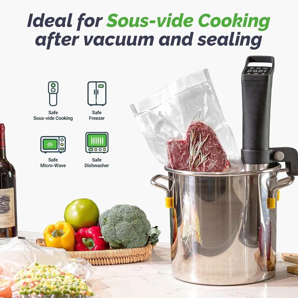Food vacuum sealer removes air from specially designed bags. Multi- layer material heat seals to keep air out and prevent freezer burn, reduces spoilage and food waste. And cooking and meal preparation will become easier, more economical and faster Two Sealing Modes: Geryon vacuum food sealer is designed with two selectable modes to provide your food with best possible preservation based on your different types of food. You can also reseal bags of rolls, snacks that you only want to seal Separated Design: you can take off the upper lid to clean the sealer machine easily & safely. Compact size and lightweight design are easy to store and move around. Fits up to 12" width Geryon or other brand vacuum sealer bags and rolls Geryon sealer machine designed with fully automatic vacuum sealing operation, soft touch digital buttons, LED indicator lights, electric plug in and the control center placed on the top panel provides a user- friendly experience for its operator Fully Starter Kits: 1x Air suction hose,5 x Heat-seal bags (7.8"*11.8"),1 x roll (7.8"*78"),1xUser Manual, 1 x Vacuum Sealer; Manufacturer's Lifetime Support Product Description 3 Easy Steps to Vacuum and Seal 1. Place the Bag Put the opening end of the bag into the red clip and fix it. 2. Lock the Lid Firmly press down until you hear two clicks, then select "Vac Seal " button to start 3. Seal Light turns off Wait for a few seconds and take out after the sealing is completed. Open the lid from both sides. 4. For Dry&Moist food Geryon vacuum-sealing system preserves both dry and moist foods, ensuring freshness, flavor, and efficient meal prep Compact Geryon Food Sealer Machine Detachable Design for Easy Cleaning Geryon sealer machine is designed to come apart, allowing you to easily remove the upper lid for safe and effortless cleaning The video showcases the product in use. The video guides you through product setup. The video compares multiple products. The video shows the product being unpacked. Geryon Vacuum Sealer E2900MS with Key Features Replaceable Foam Gaskets Replace the gasket with a new one to prevent air leakage and extend the life of the vacuum sealer. Easy to Store Easy to handle with one hand, the vacuum sealer is designed with a small footprint for convenient storage and portability. Keep Food Fresh 5 times Longer Premium, Convenient Prevent freezer burn effectively, ensuring you can cook what you need immediately and savor the rest at your convenience. Fresh Taste, Less Waste Effortlessly preserve bulk purchases or leftovers with Geryon food vacuum sealer and roll bags for ultimate convenience. Buy Together with Add to Cart Add to Cart Add to Cart Add to Cart Customer Reviews 4.7 out of 5 stars 1,688 4.7 out of 5 stars 585 4.7 out of 5 stars 585 4.7 out of 5 stars 429 Price $14.99 $ 14 . 99 $9.99 $ 9 . 99 $29.99 $ 29 . 99 $27.99 $ 27 . 99 Size 8"x16ft 8"x12" 8"x12" 8"x120ft Advantage Create Custom-sized Bags Time & Cost-saving Bags Time & Cost-saving Bags Create Custom-sized Bags For All Brand Vacuum Sealers? Yes Yes Yes YesYes For all Dry & Moist Food ✔ ✔ ✔ ✔ BPA Free ✔ ✔ ✔ ✔ Microwaveable Yes Yes Yes Yes Freezer Storage ✔ ✔ ✔ ✔ For Liquid Food No Recommend No Recommend No Recommend No Recommend